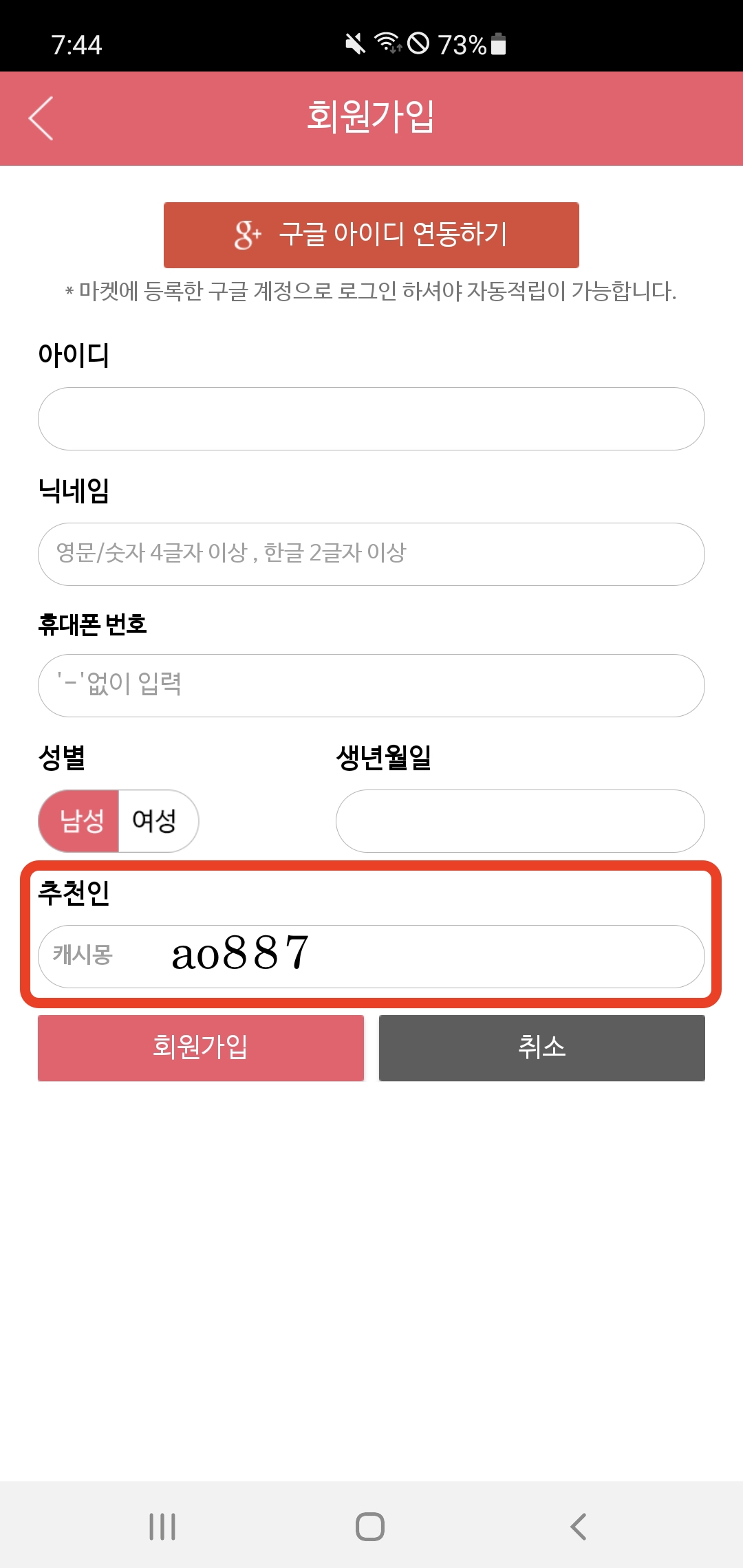 마지막으로 추천인 칸에 ao887을 입력하고 가입하시면 추천 포인트 500P를 받으실 수 있으니 잊지 마세요.