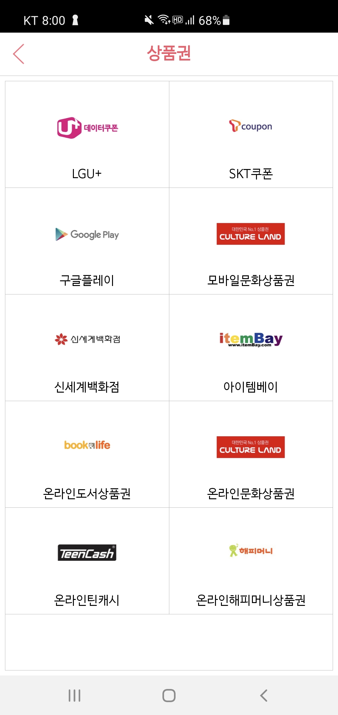 스토어에서 무엇을 구매할 수 있는지 둘러보다가 상품권 페이지로 이동해 보았습니다. 상품권 페이지에서 구글 플레이 기프트 카드와 모바일 문화상품권, 온라인 도서상품권, 온라인 문화상품권, 온라인팀 캐시, 온라인 해피머니 상품권 등을 구매할 수 있어 보입니다.