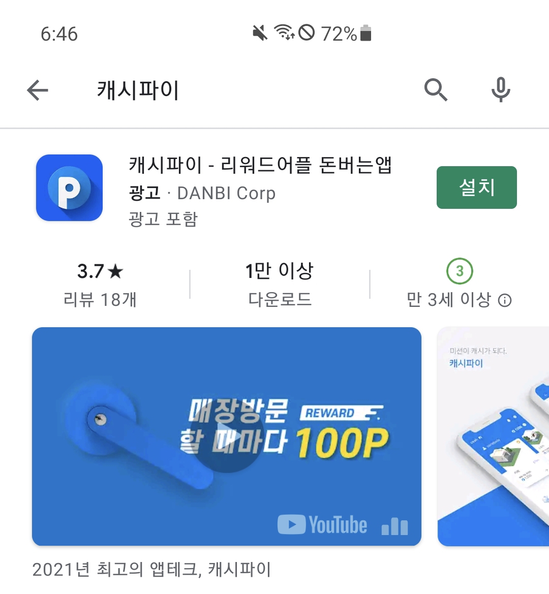 구글 플레이 스토어에서 설치할 수 있는 돈버는 어플 '캐시파이'를 소개합니다.