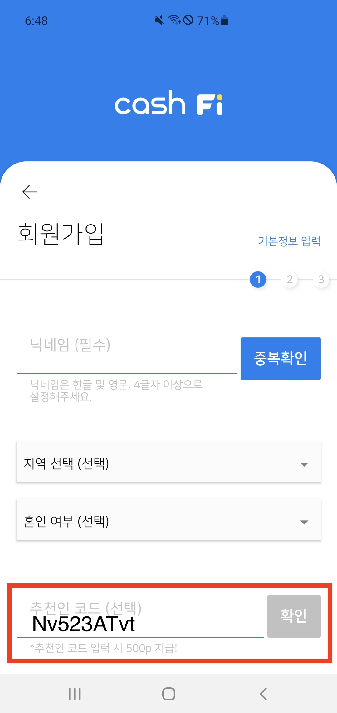 회원가입 페이지에서 추천인 코드 Nv523ATvt를 입력하면 500P를 받고 시작할 수 있으니 꼭 복사해서 붙여넣기하세요~!