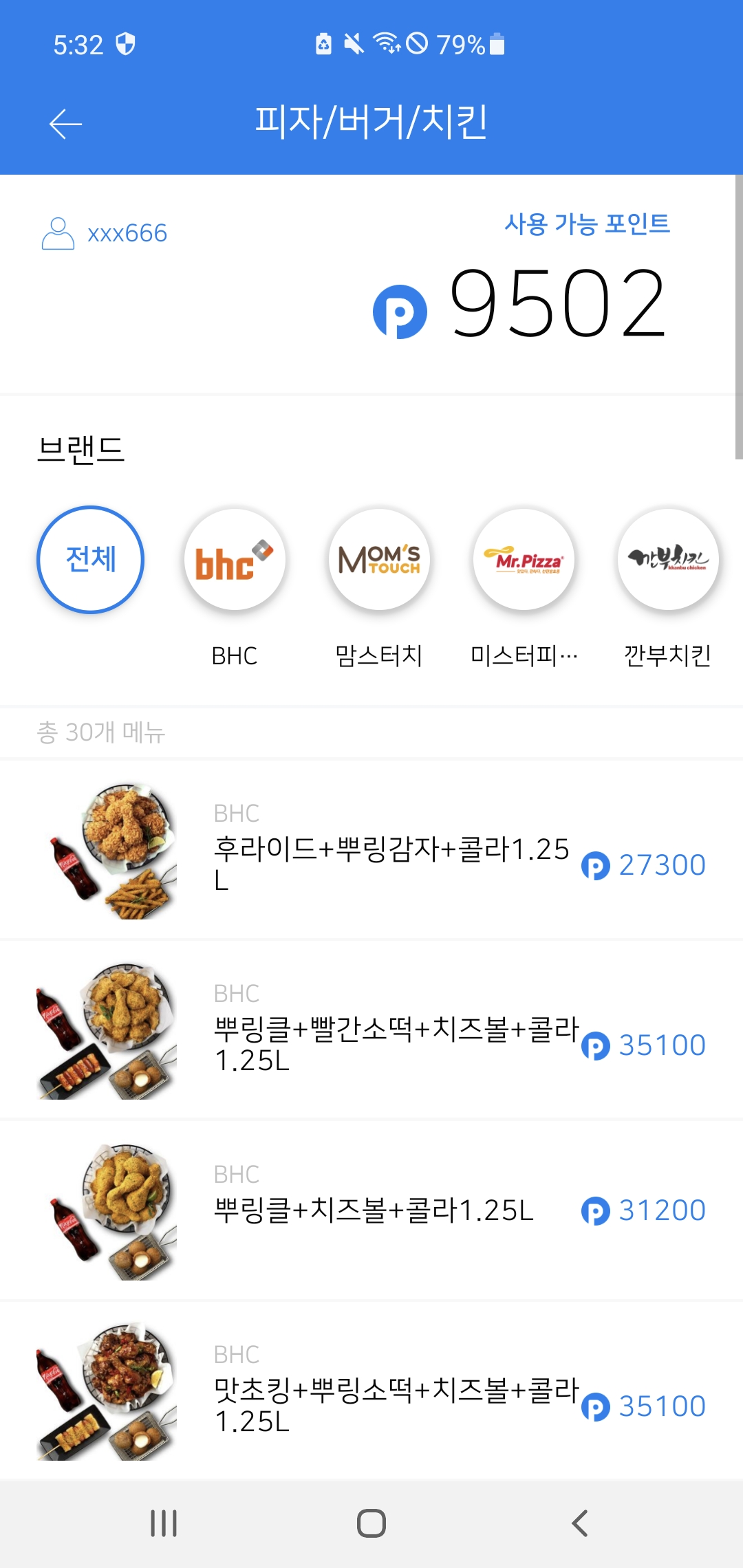 그런데 포인트를 현금으로 출금하지 않고, 기프티콘을 구매하는데 사용하면 약간 포인트 비율이 달라 손해를 볼 수도 있습니다. 예를 들어 뿌링클+치즈볼+콜라1.25L는 소비자 가격이 24,000원인데 캐시파이 스토어에선 31,200P에 판매하고 있습니다. 현금 출금으로 하는 것이 훨씬 이득이니 꼭 출금을 이용하세요~!