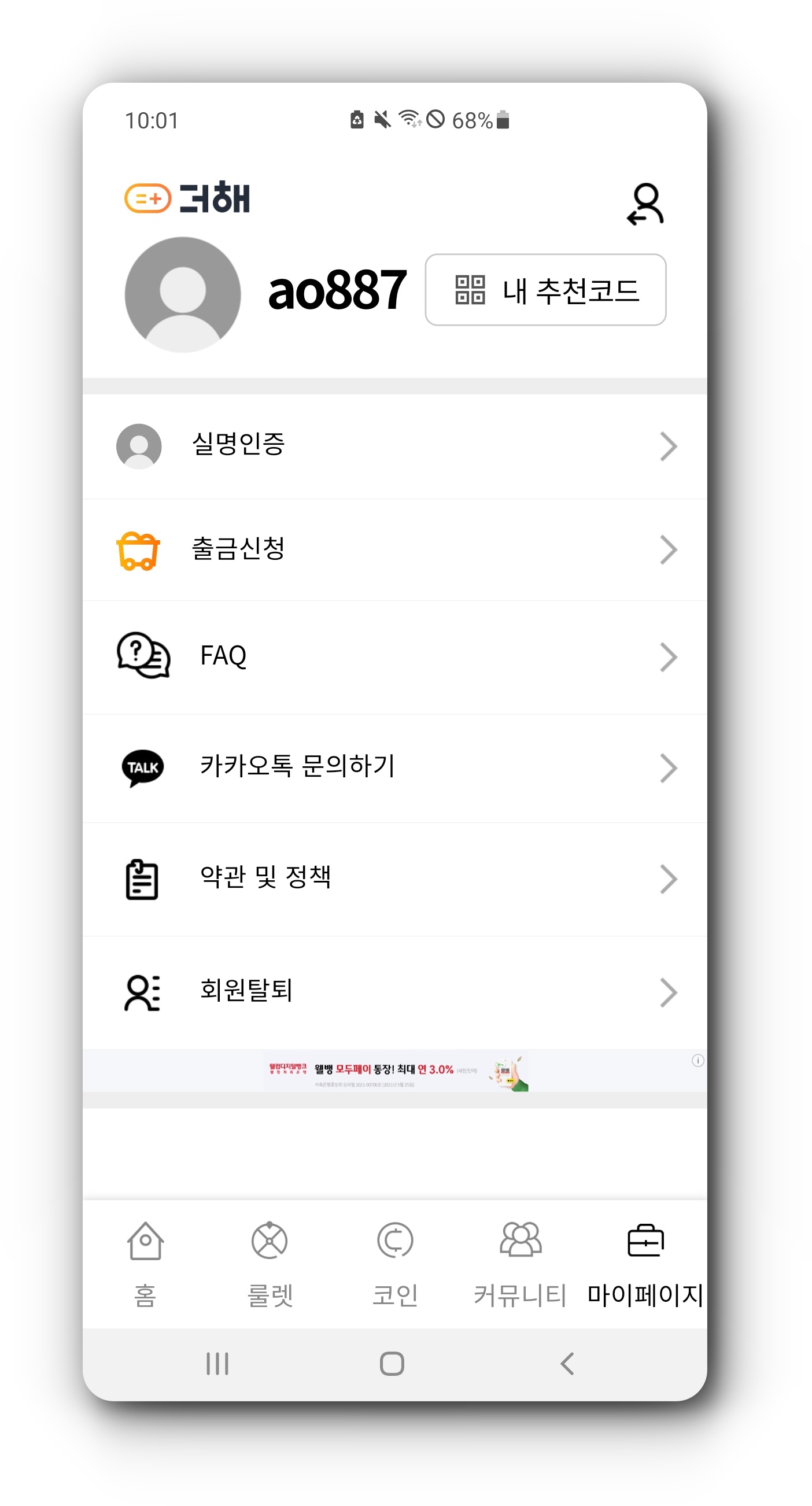 - 마이페이지에서 실명인증을 마치면 출금신청을 진행할 수 있다.