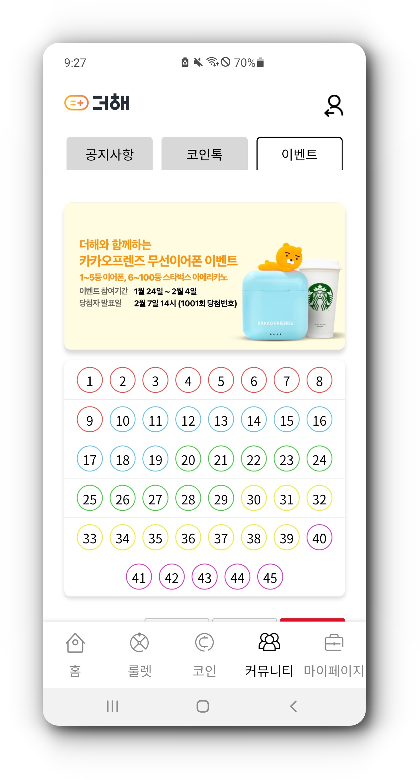 - 커뮤니티에서 공지사항 뿐만 아니라 이벤트를 개최하고 있다.