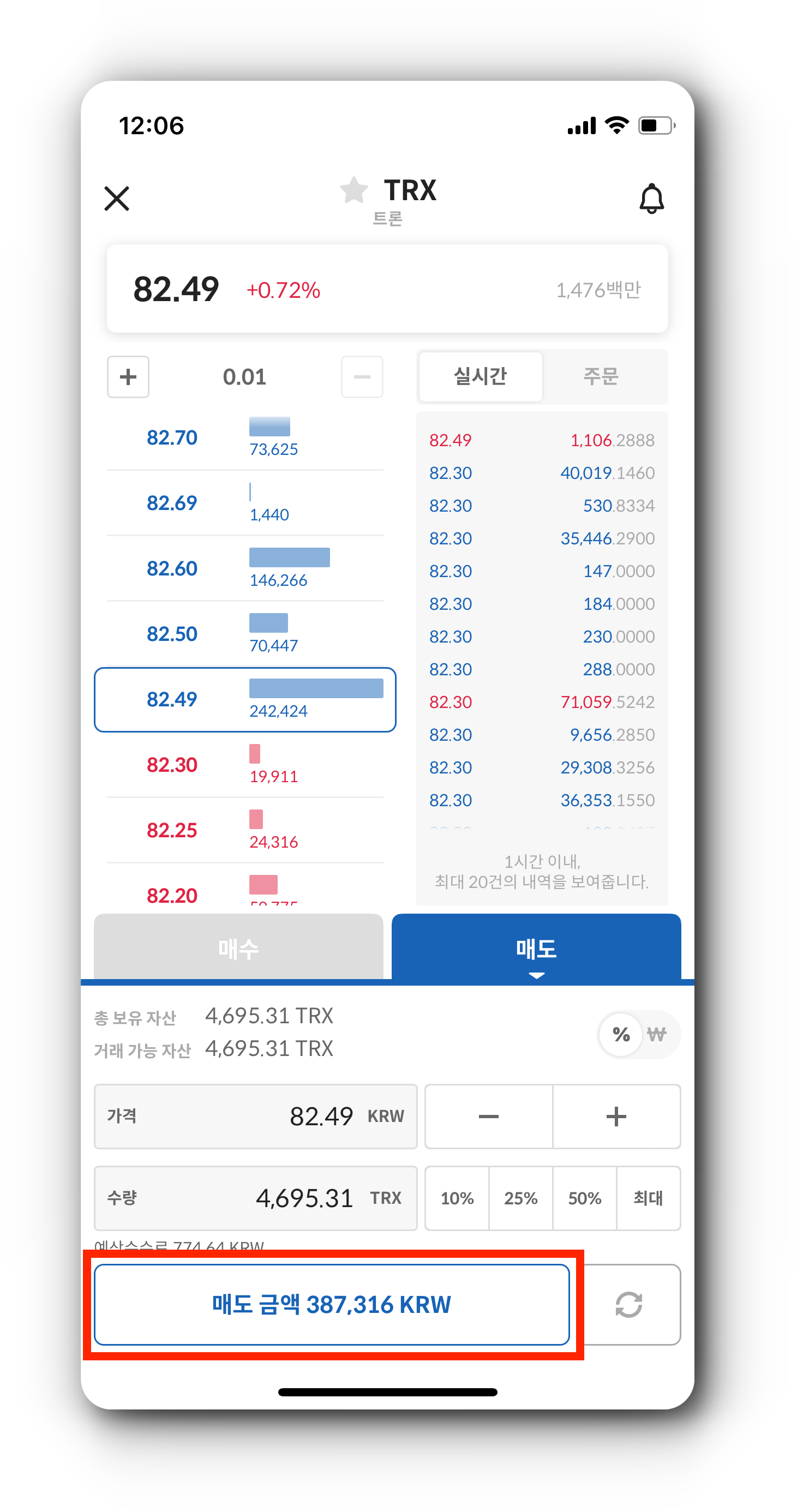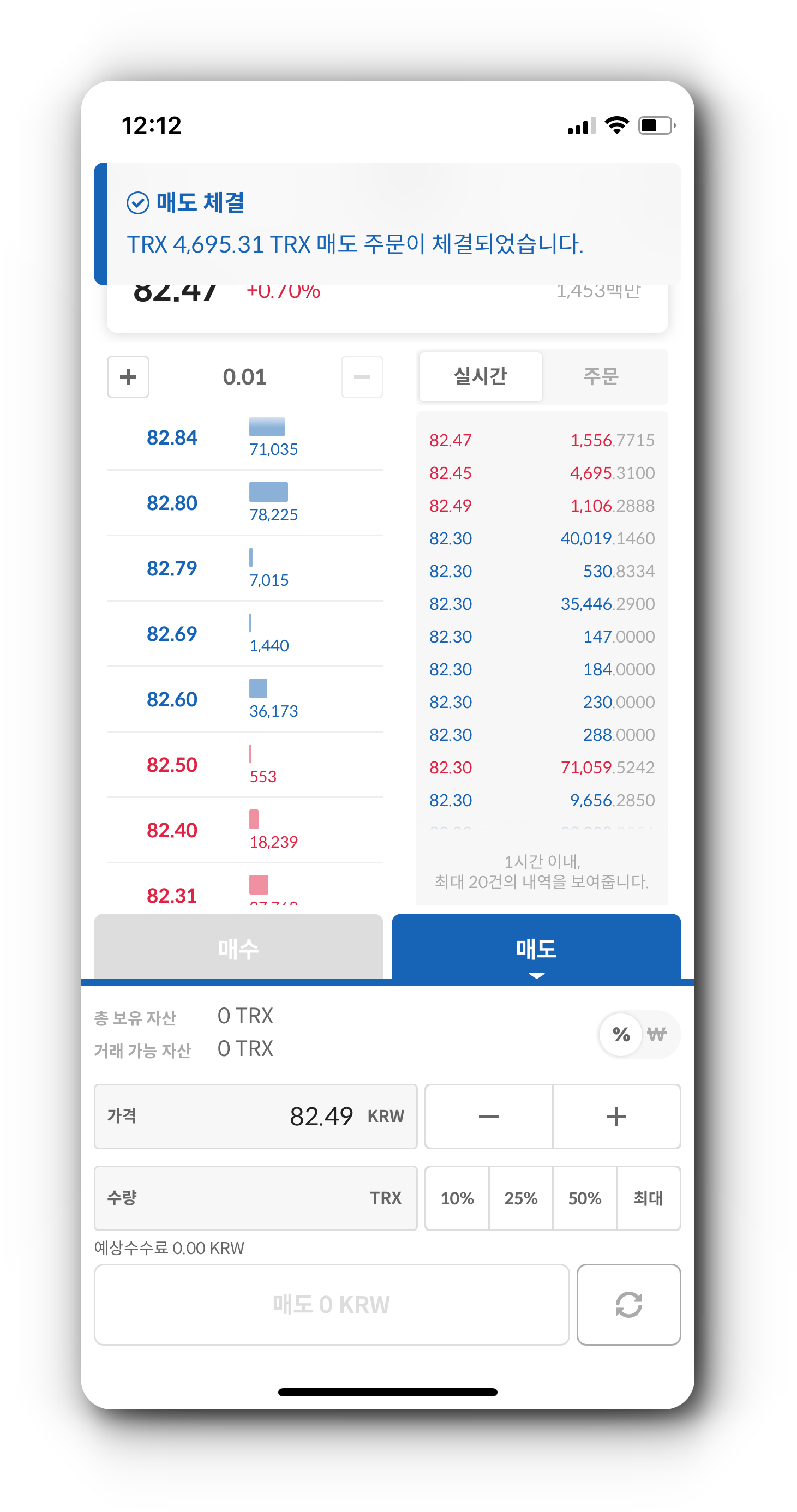 7. 입금한 TRX를 코인원에서 매도하기