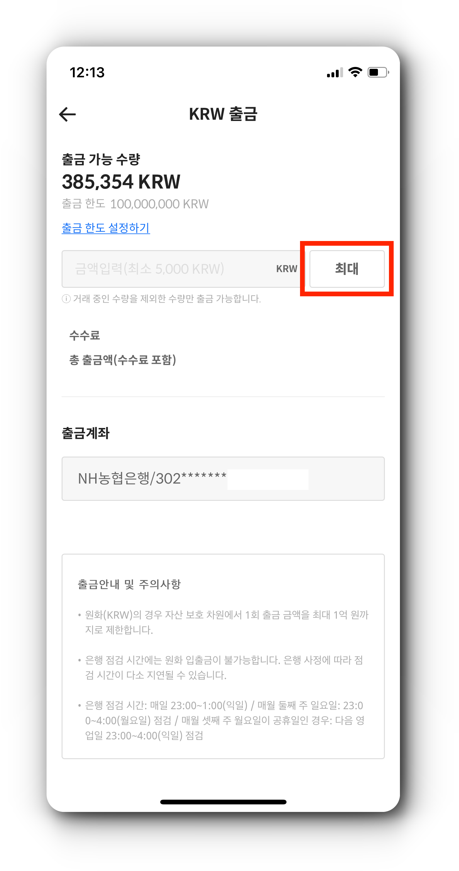 8. 매도하여 얻은 KRW(원화)를 출금하기
