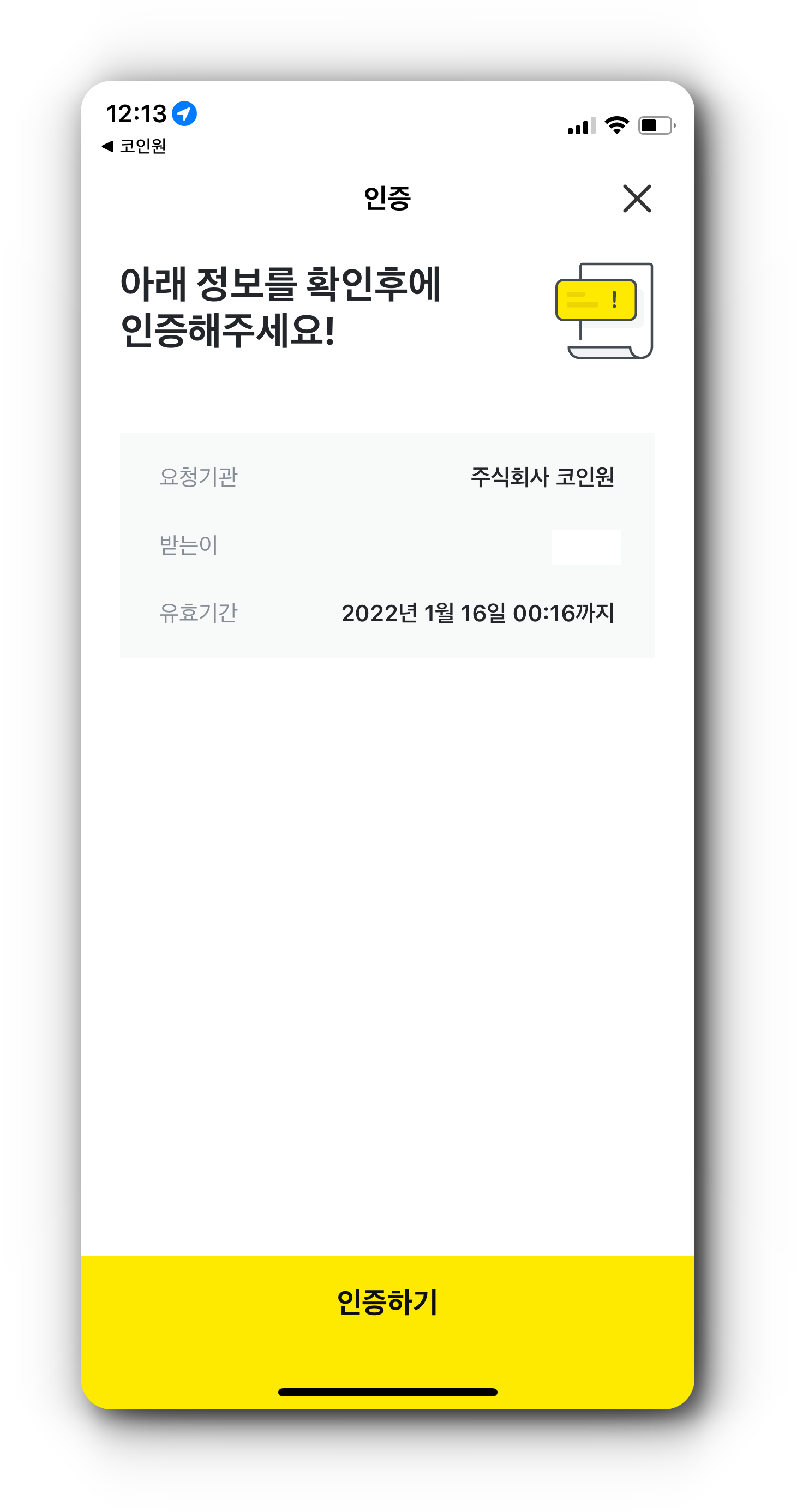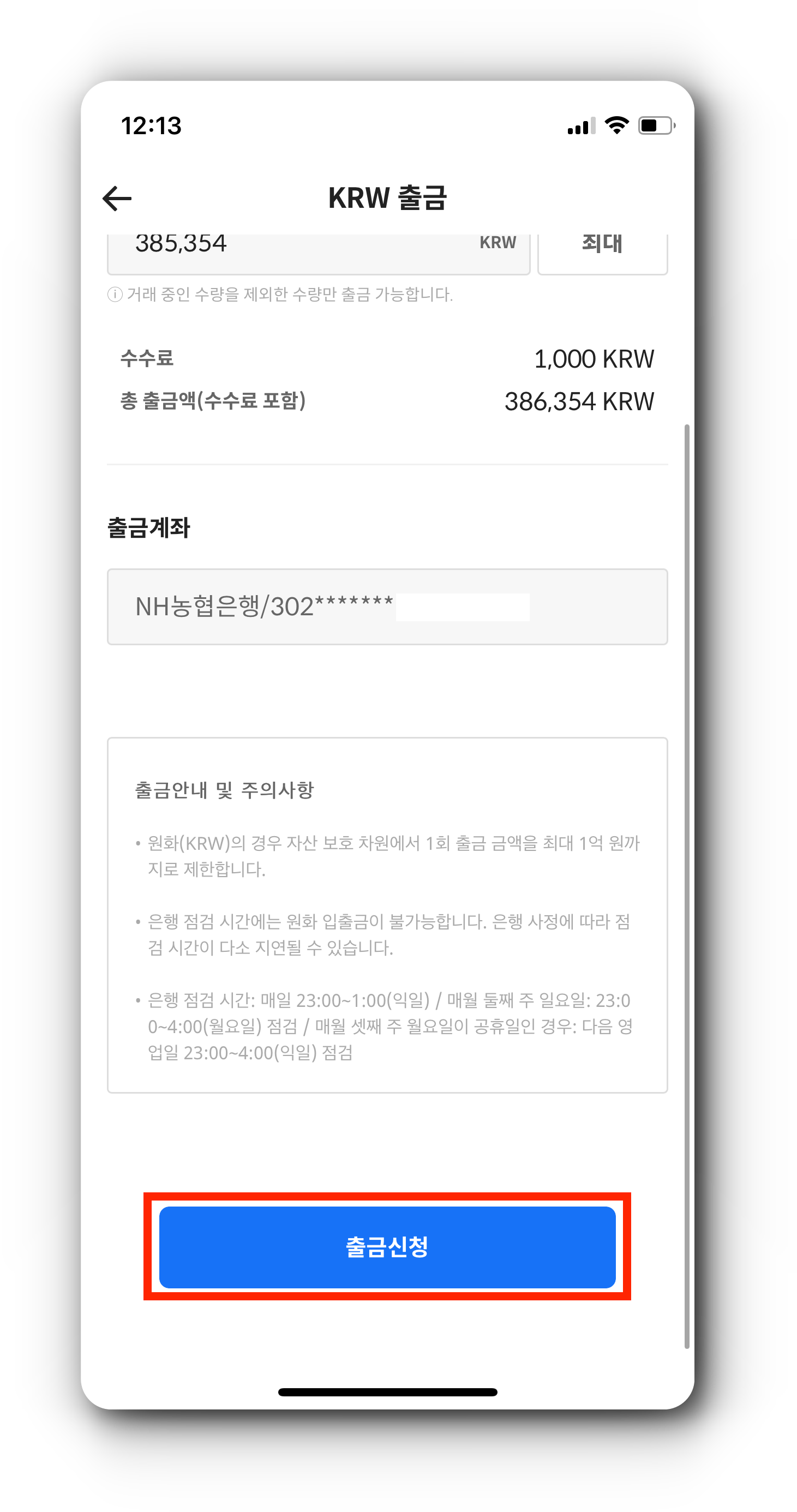 (3) 출금 신청이 완료되면 코인원에 등록된 농협중앙회 계좌로 출금한 금액이 입금됩니다.