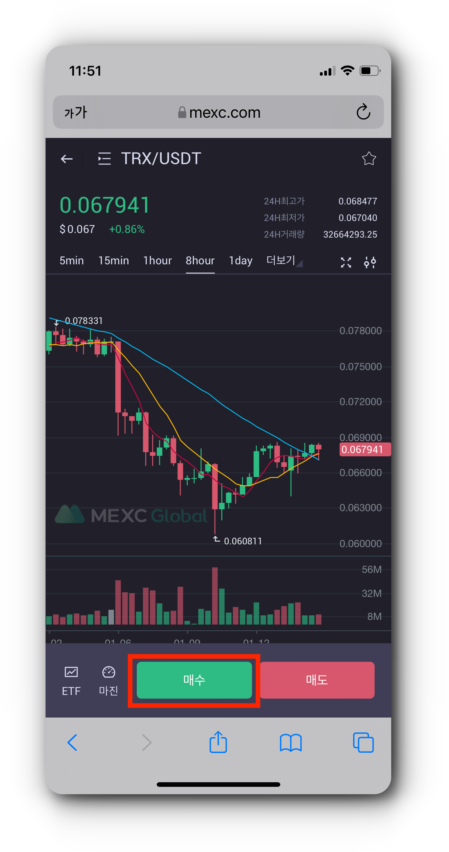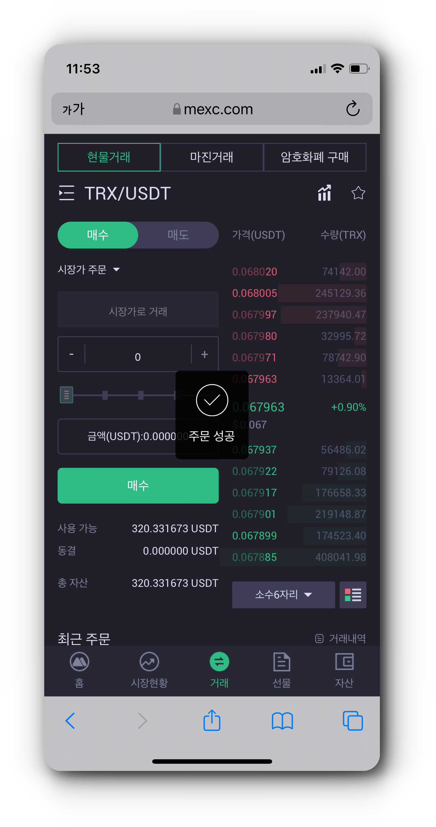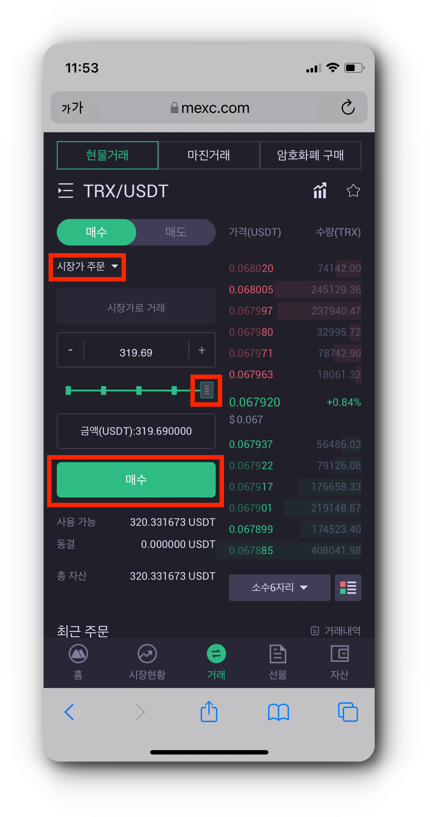 5. TRX/USDT(트론)를 매수하기