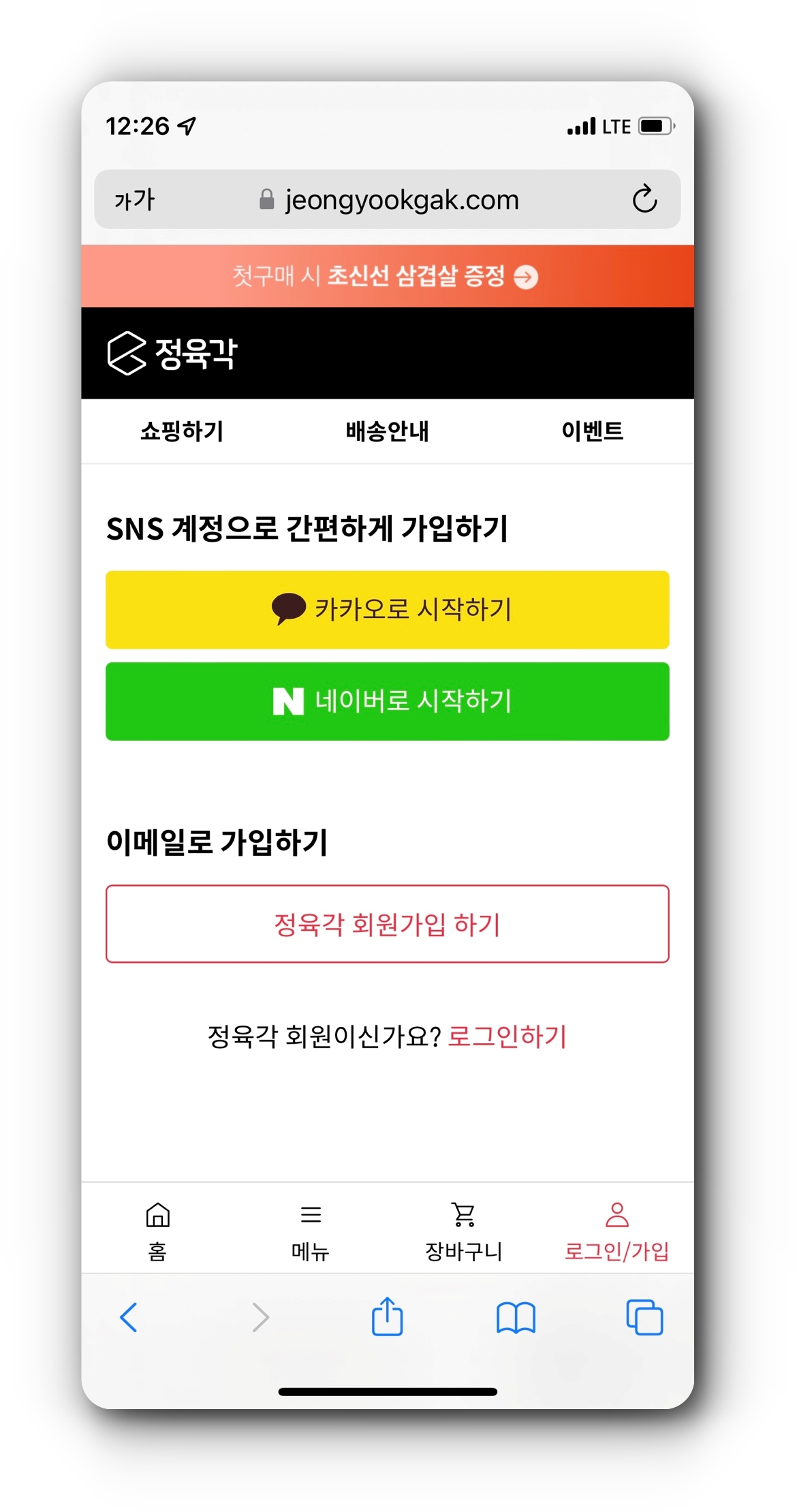 정육각 회원가입 방법