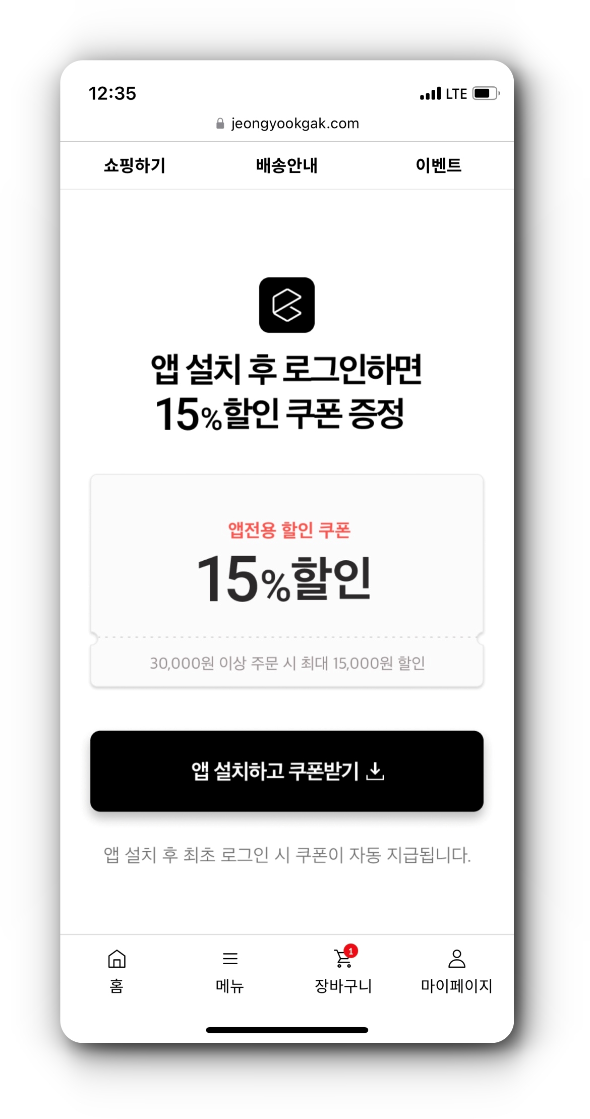 정육각의 앱을 설치하면 3만원 이상 주문 시 최대 1만 5천원까지 할인받을 수 있는 앱전용 15% 할인 쿠폰이 지급된다. 구글 플레이 스토어나 앱스토어에서 정육각 앱을 설치하고 최초로 로그인하면 해당 쿠폰이 자동으로 발급된다.