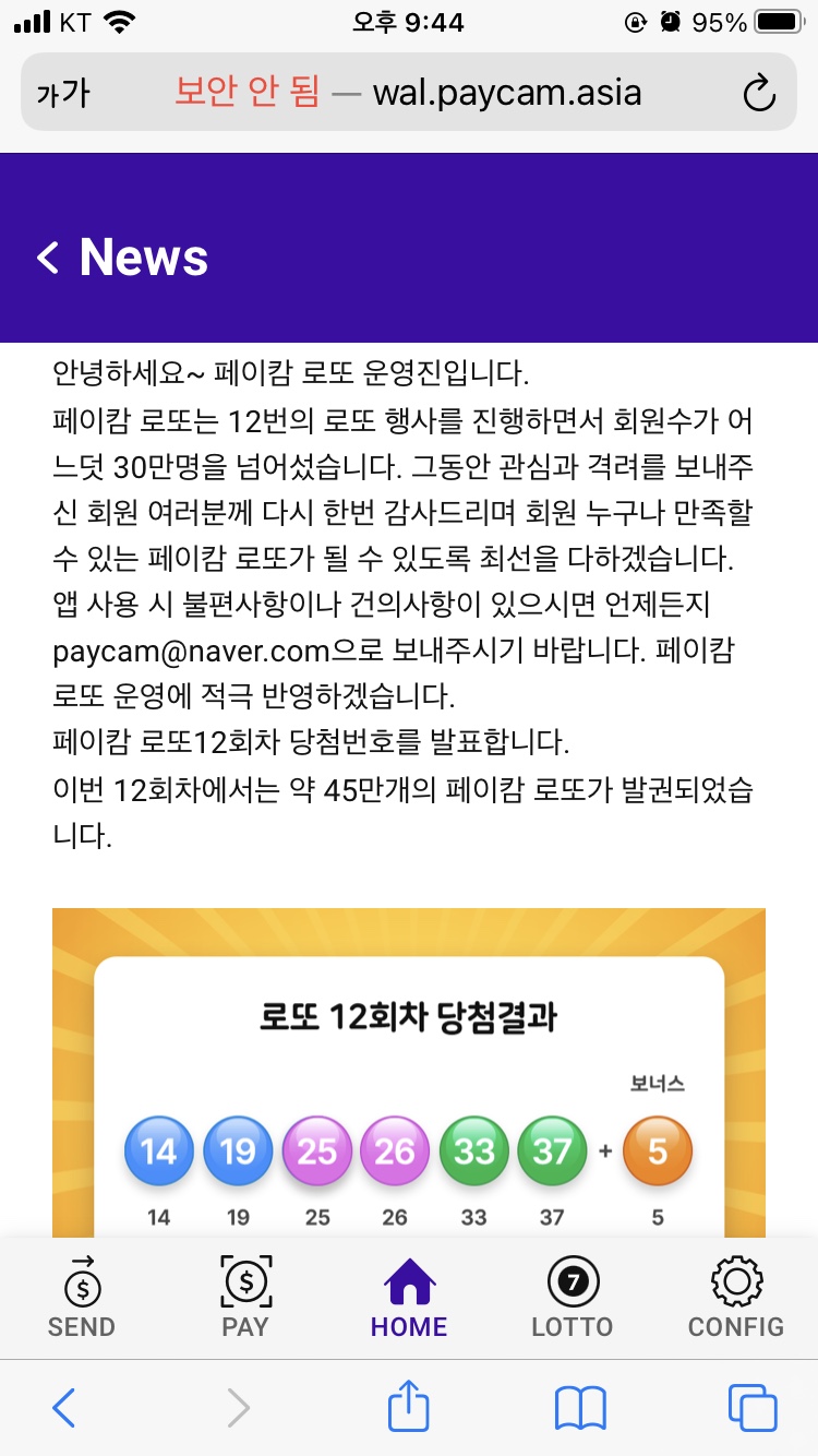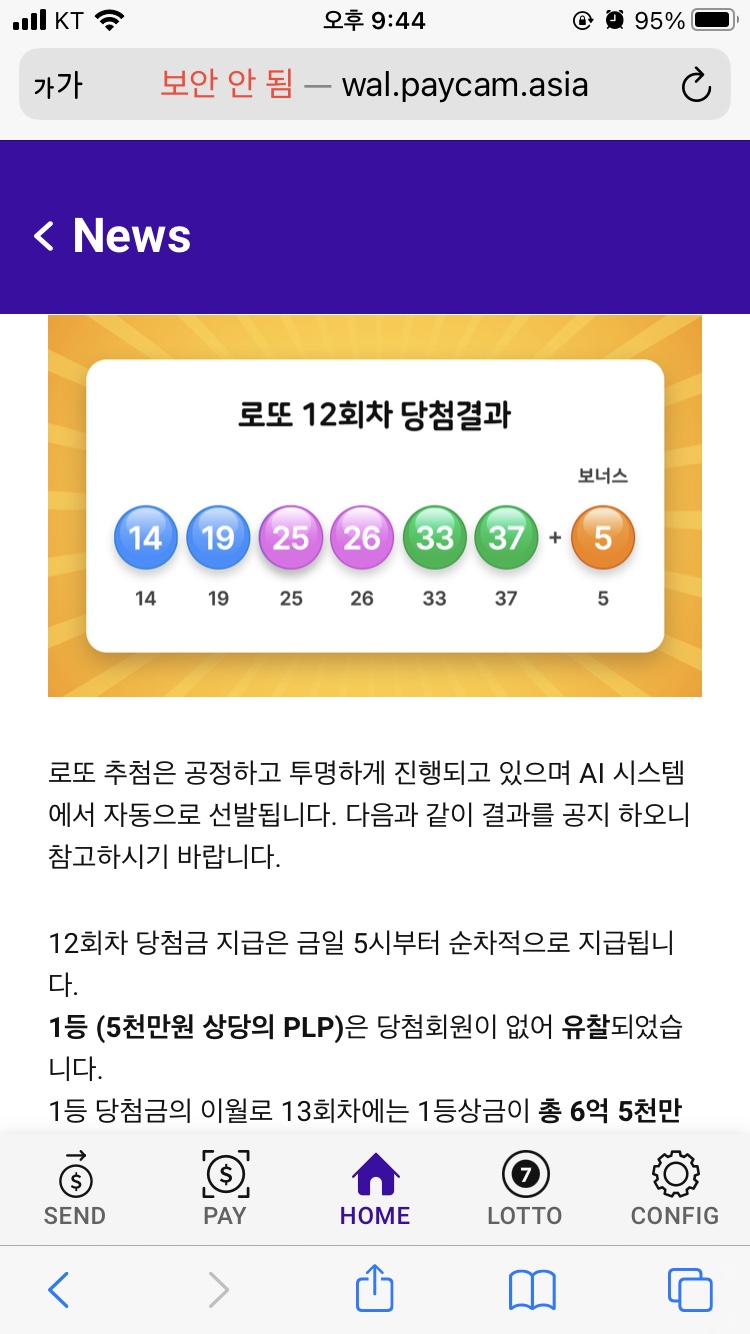 위 사진은 7월자 12회차 추첨 결과 공지의 일부입니다. 12회차에서 1등 당첨금이 다음 회차로 이월되어 총 6억 5천만원의 당첨금이 되었다는 것을 확인하실 수 있습니다. 12회차부터 현재 19회차까지도 1등이 없어 총 9억 5천만원이 되었습니다.