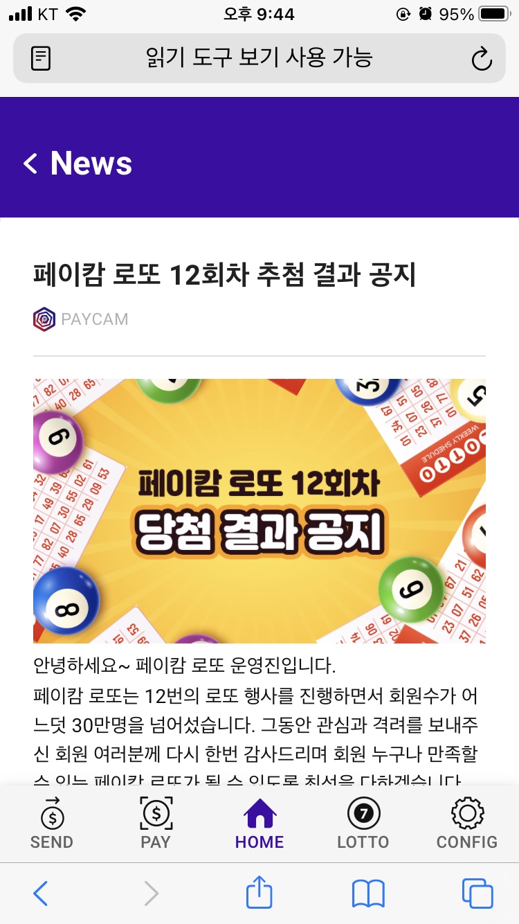 좌측이 방금 발급받았던 무료 로또 현황입니다. 로또는 매주 월요일 오후에 홈 화면에서 발표되며, 당첨 결과를 확인하실 수 있습니다. 현재 19회동안 1등 당첨금이 유찰되어 약 9억 5천만원이 기다리고 있습니다. 행운의 주인공은 과연 누구일까요?