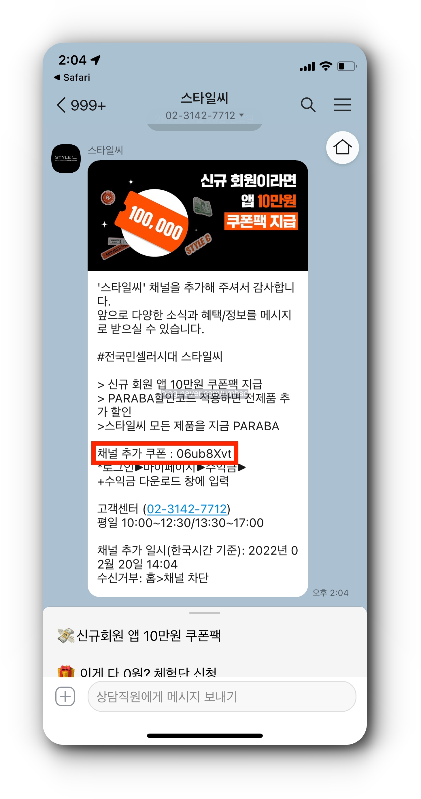 스타일씨 카카오톡 채널 추가 쿠폰 받는 방법