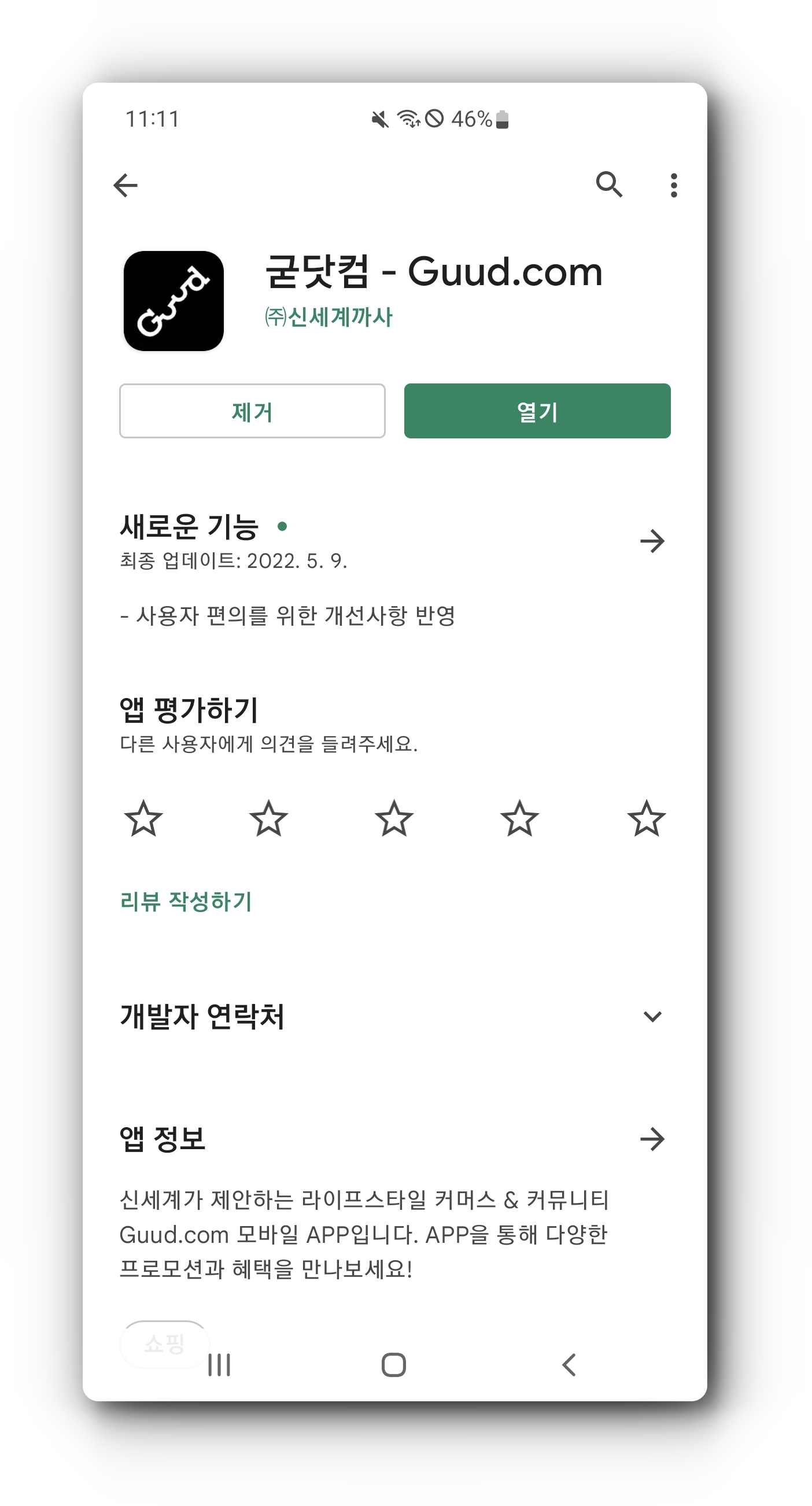 우선 구글 플레이 스토어나 앱스토어에서 굳닷컴 앱을 설치해주세요. 앱을 설치하여 처음 로그인하면 15% 쿠폰을 받으실 수 있습니다.