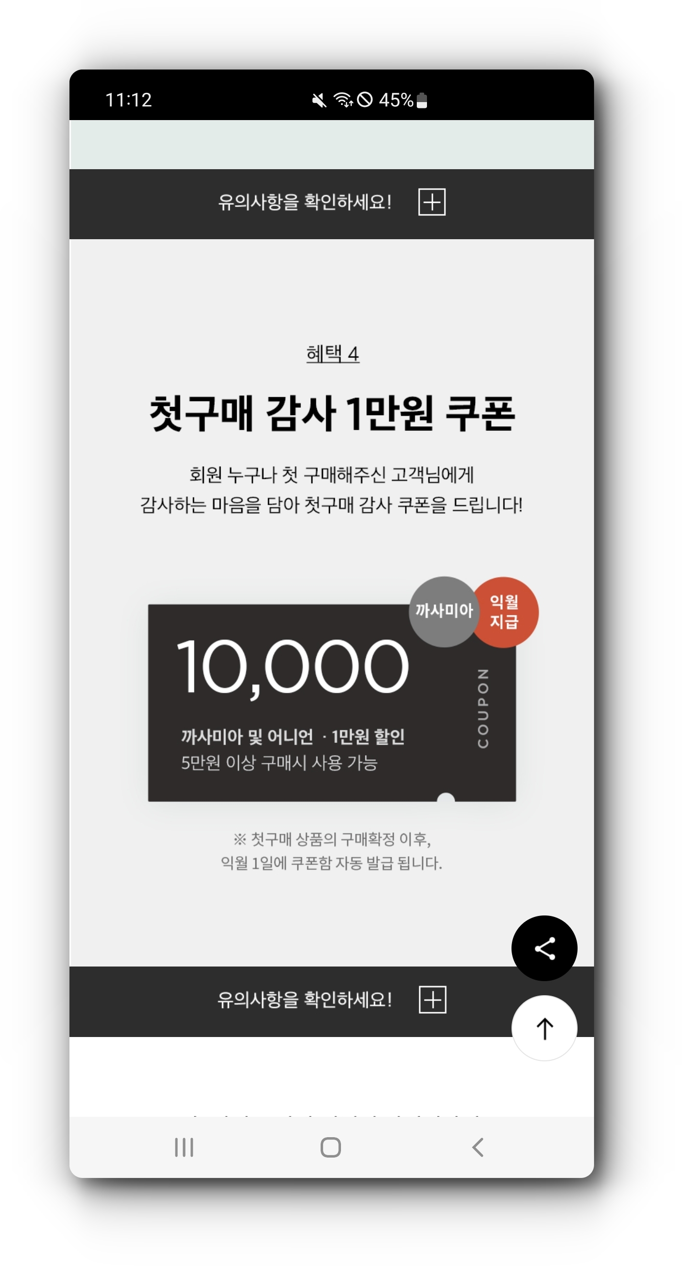 혜택 4. 첫 구매 감사 1만원 쿠폰