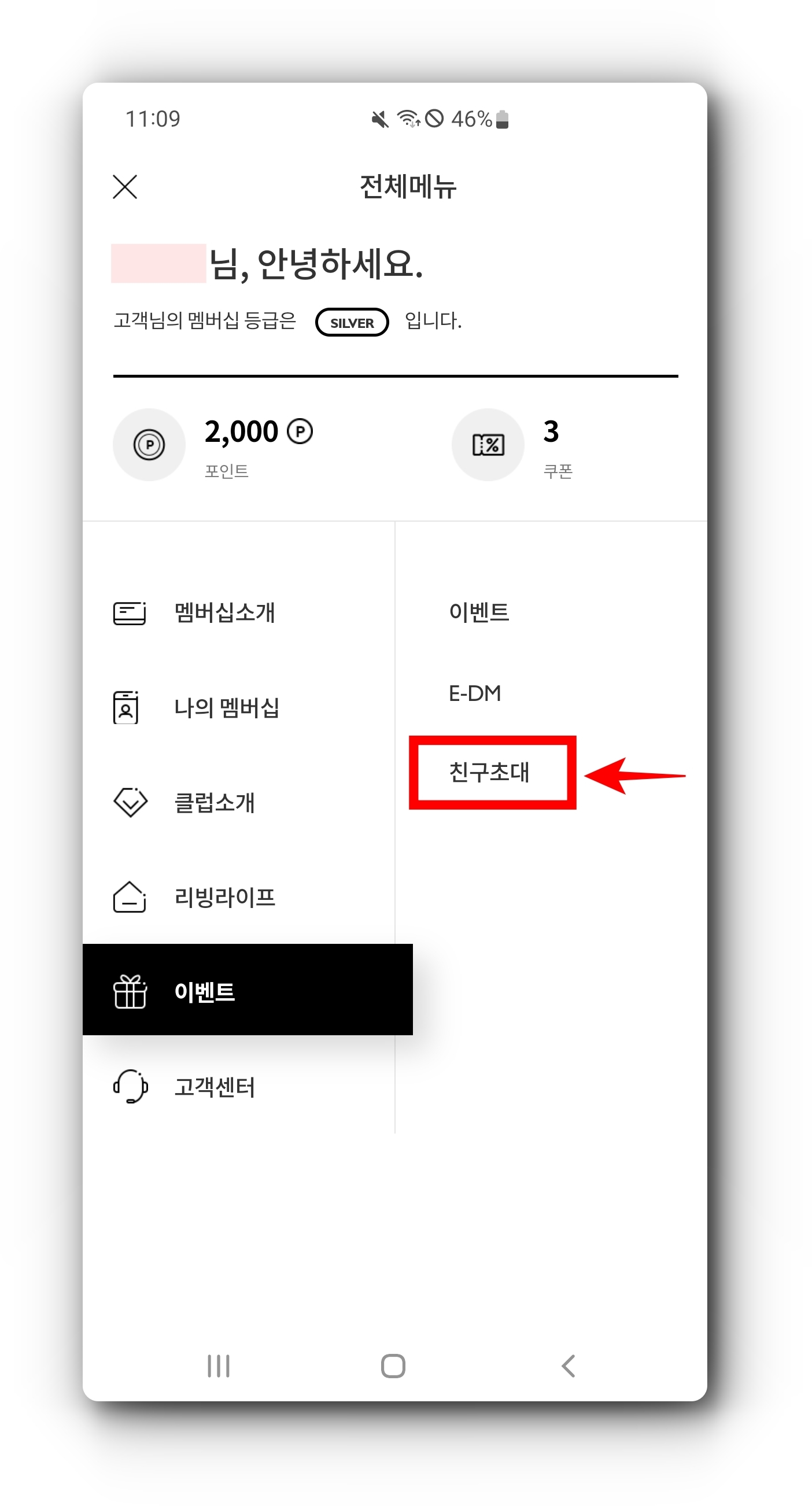 4. 회원가입 완료 시 친구추천 실시간 마일리지 2천원이 지급됩니다.