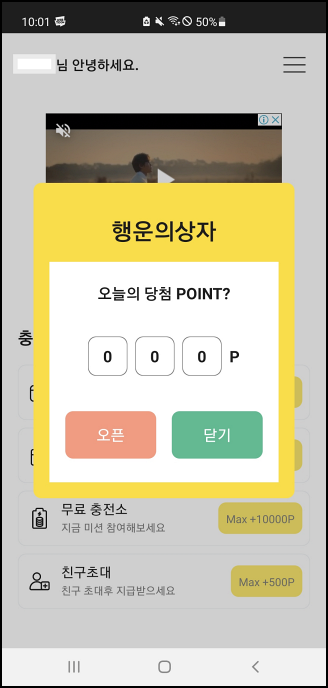2번에서 소개한 퀴즈는 1시간마다 1회 참여할 수 있고, 퀴즈 기회는 매일 5개가 무료로 지급된다. 만약 하루에 5번 이상 퀴즈에 참여했다면 행운의 상자를 열어 포인트를 얻을 수 있다. 포인트는 최대 3자리수까지 등장한다.