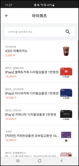 아이퀴즈에서 얻은 포인트는 퀴즈샵에서 현금과 같이 사용할 수 있다. 퀴즈샵에서 판매하는 상품으로는 기프티콘이나 상품권이 있다. 상품의 소비자가격과 포인트의 비율은 1:1로, 1만원 상품권을 구매하려면 아이퀴즈 포인트 1만 포인트가 필요하다.