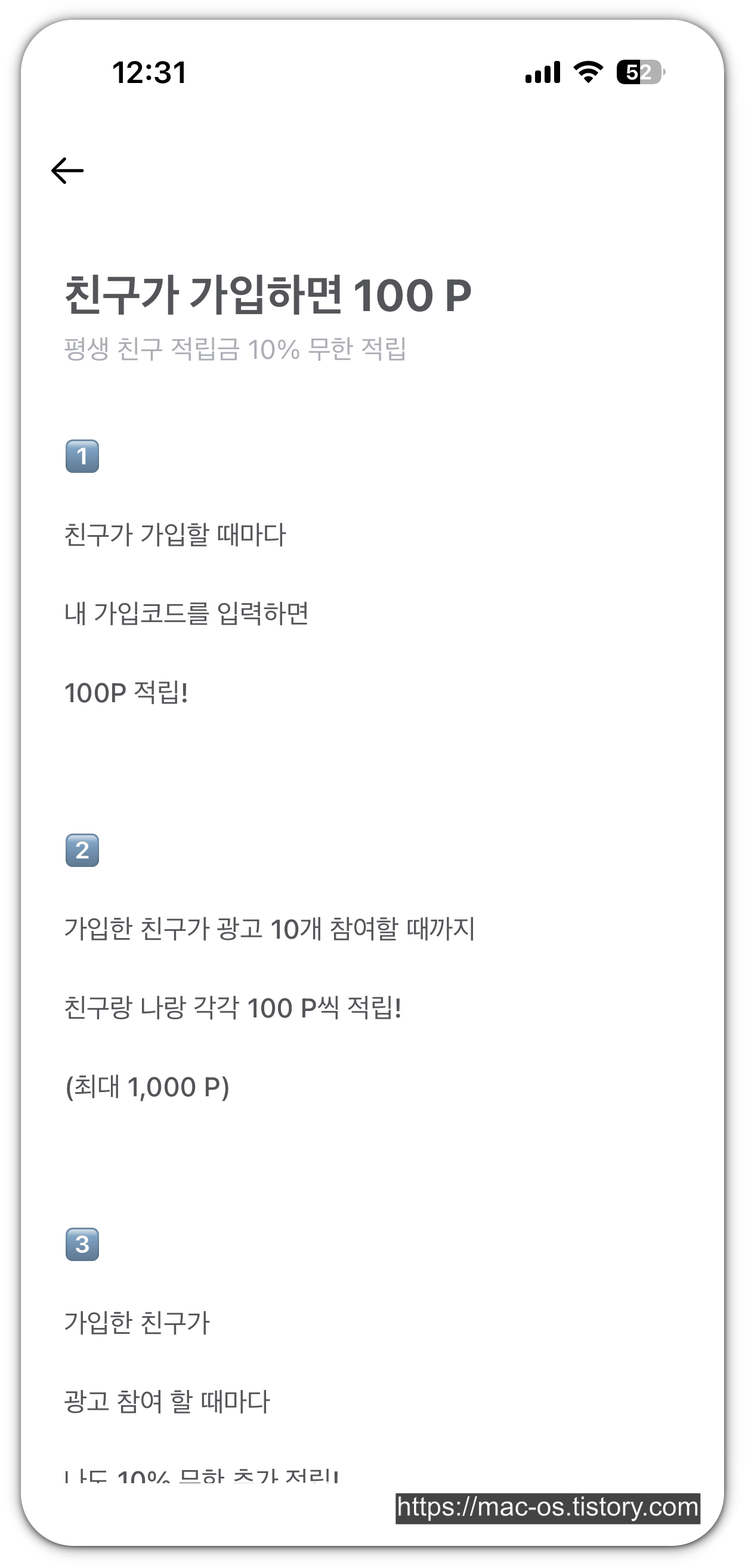 회원가입할 때 추천인을 입력하고 가입하면 최대 1,000P 혜택을 받을 수 있습니다. (광고 10개 참여할 때까지 1개당 100P 추가 지급)