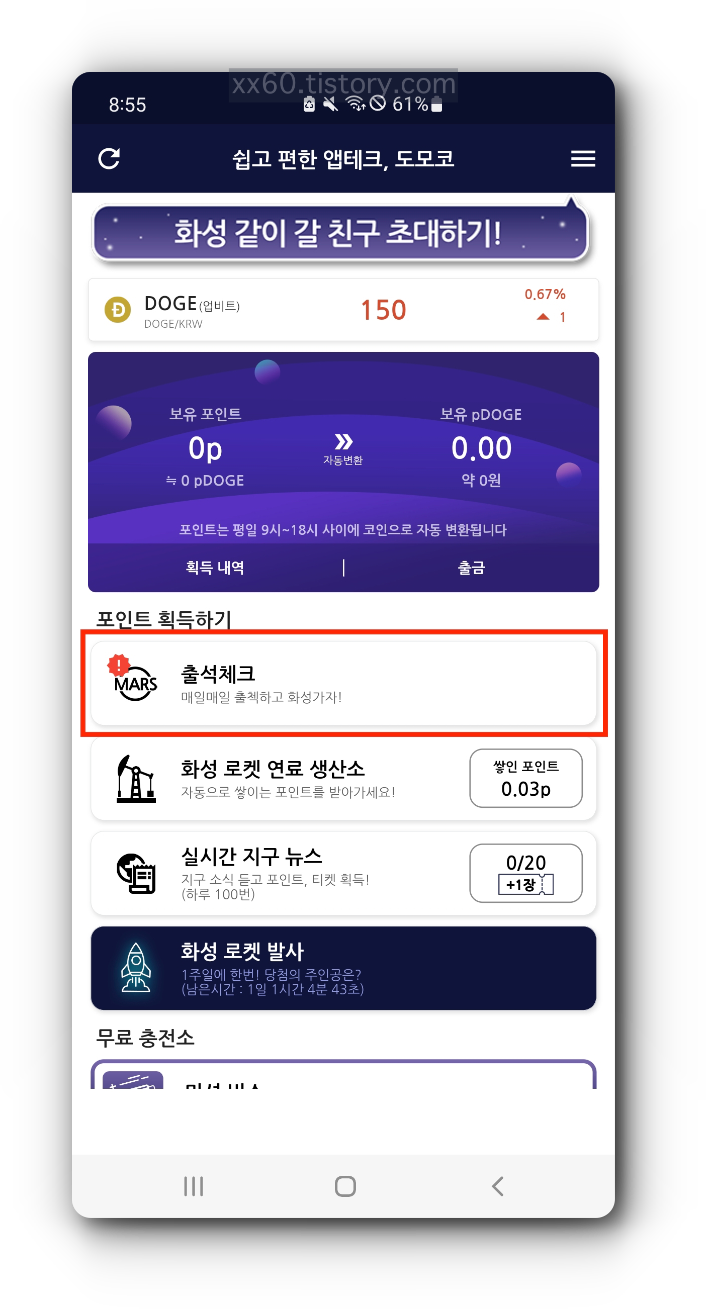 도모코는 2022년 2월 8일 구글 플레이 스토어에 출시된 앱으로, 출석체크와 포인트 생산소를 통해 도지코인(DOGE)을 무료로 채굴할 수 있는 어플입니다.