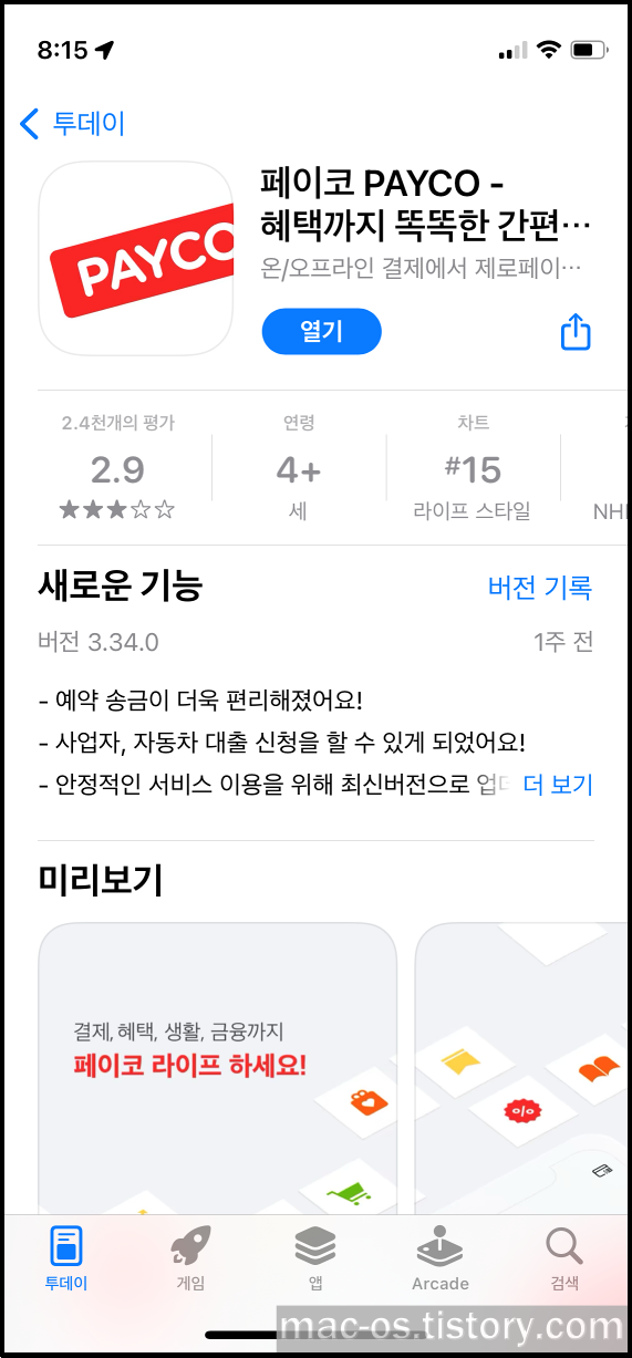 우선 구글 플레이 스토어나 애플 앱스토어에서 페이코 앱을 설치합니다. 그리고 아래 링크를 클릭합니다.