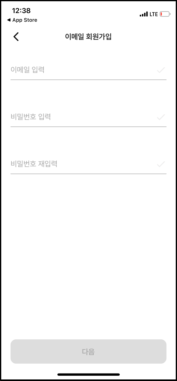 이메일로 회원가입하게 되면 이메일과 비밀번호를 입력하게 됩니다. 이후 이름과 휴대폰 번호를 입력하여 휴대폰 인증을 진행합니다.