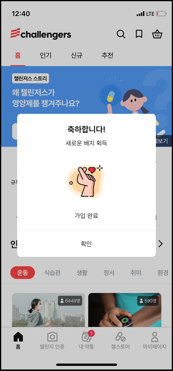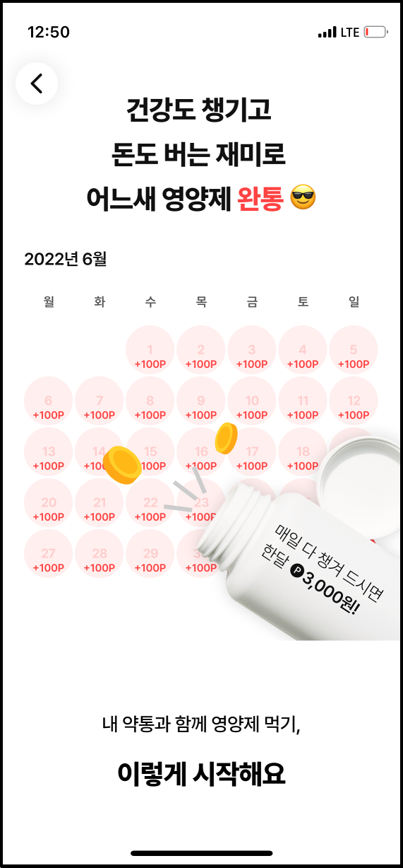 챌린저스에서 챌린지에 인증 100%를 달성하면 예치금을 주는데, 이건 현금으로 환급이 가능합니다. 포인트는 챌스토어에서 사용이 가능하구요. '내 약통'으로 이동해서 영양제를 인증하면 매일 100포인트, 한 달에 3천 포인트를 받을 수 있습니다.