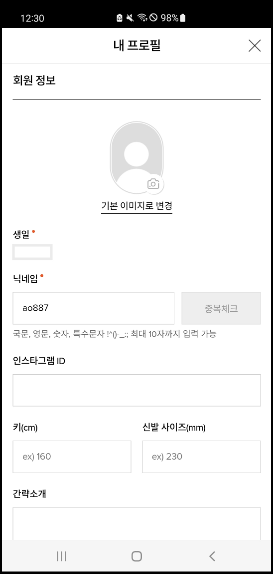 [내 프로필]에서 아래로 스크롤을 내리면 [추천인 ID]를 입력할 수 있는 칸이 있습니다. 여기에 xx2023을 입력하고 [확인]을 터치합니다.