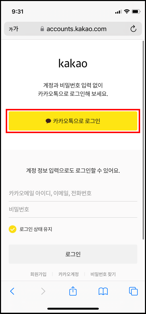 (카카오톡 계정으로 가입하셔야 합니다.)