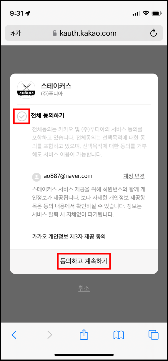 카카오톡 계정으로 로그인할 때, 정보 제공에 동의해주면 별다른 절차없이 가입이 완료된다.