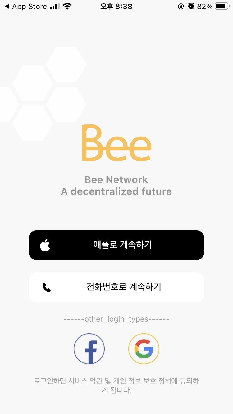 구글 Play 스토어나 App store에서 'Bee network'를 검색하시면 앱을 설치하실 수 있습니다. 앱을 실행하시면 애플, 전화번호, 페이스북, 구글 이 4가지 방법으로 회원가입이 가능합니다.