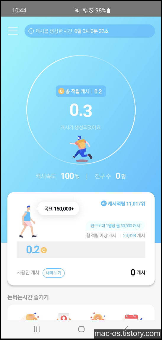 돈버는시간 캐시 적립 방법