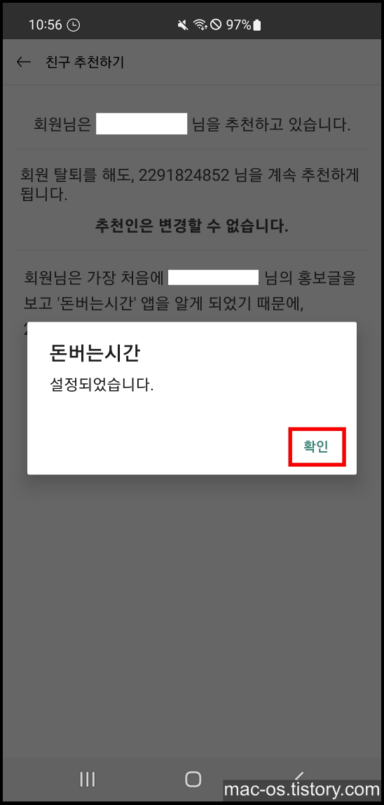 돈버는시간 추천인 입력 방법