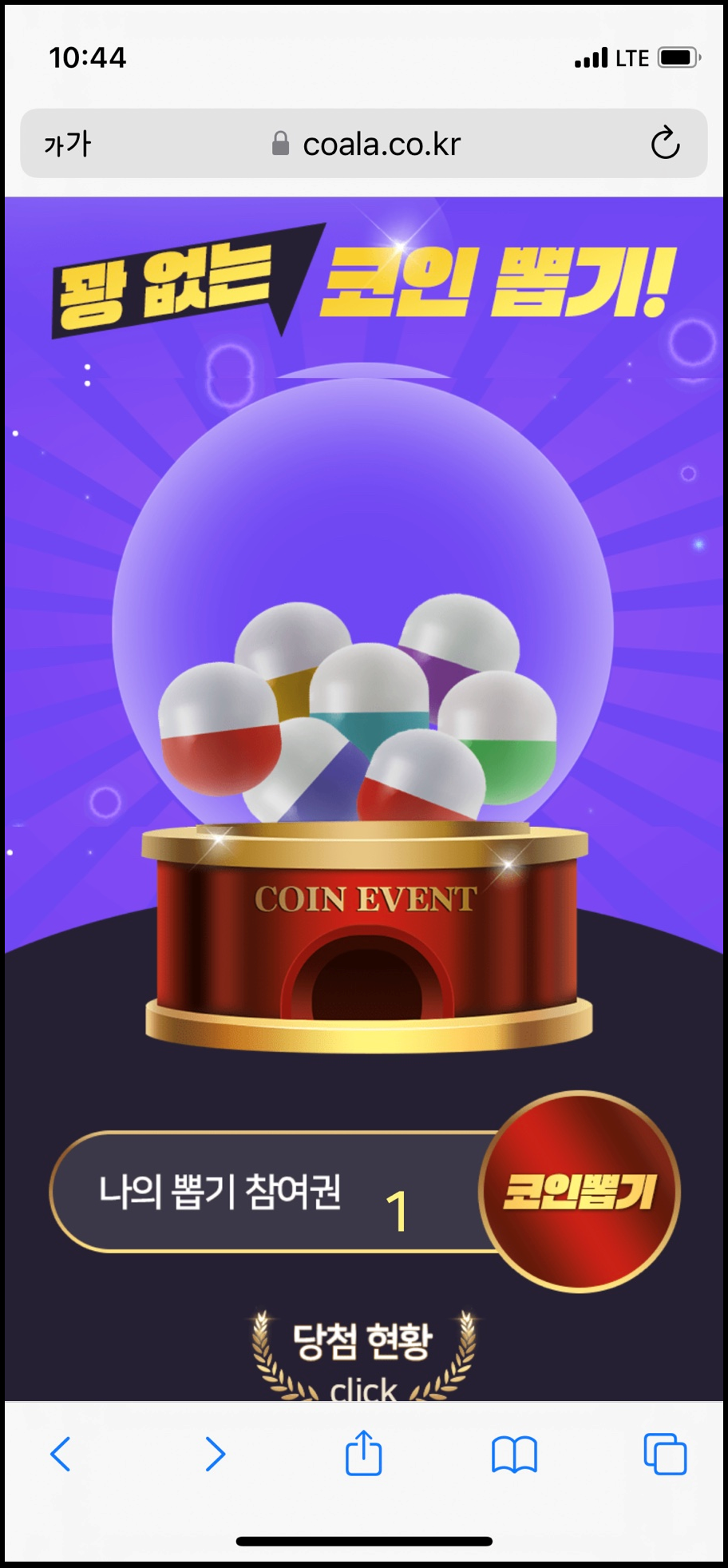 이벤트 페이지에서 [코인뽑기] 버튼을 눌러 코인을 뽑으실 수 있습니다.