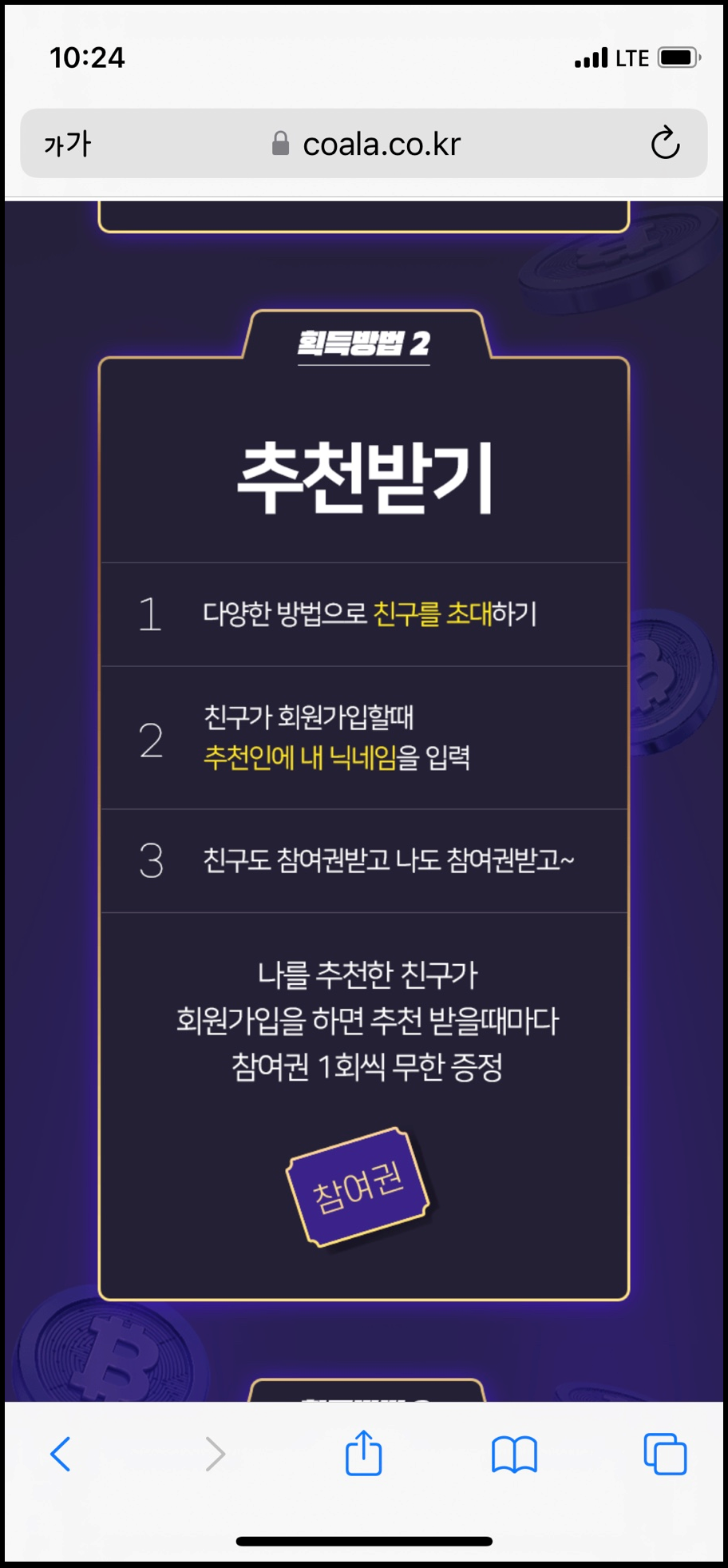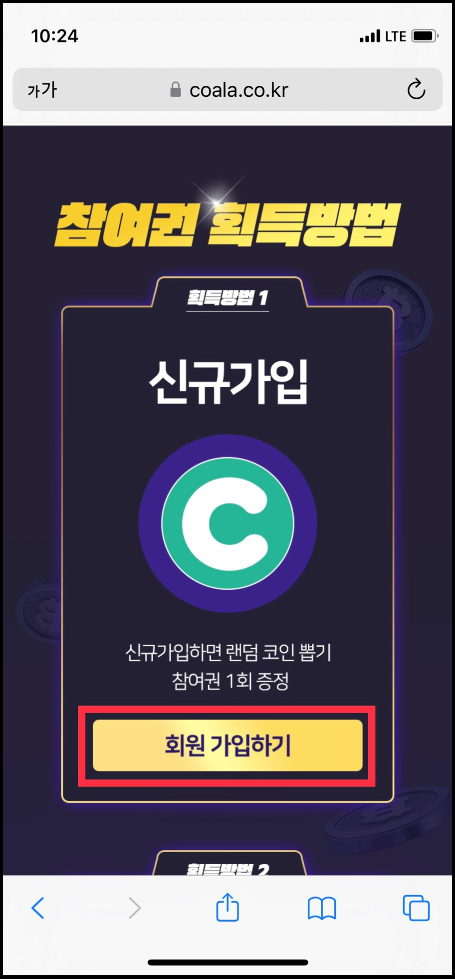 1. 위에 있는 코알라 이벤트 사이트로 접속
