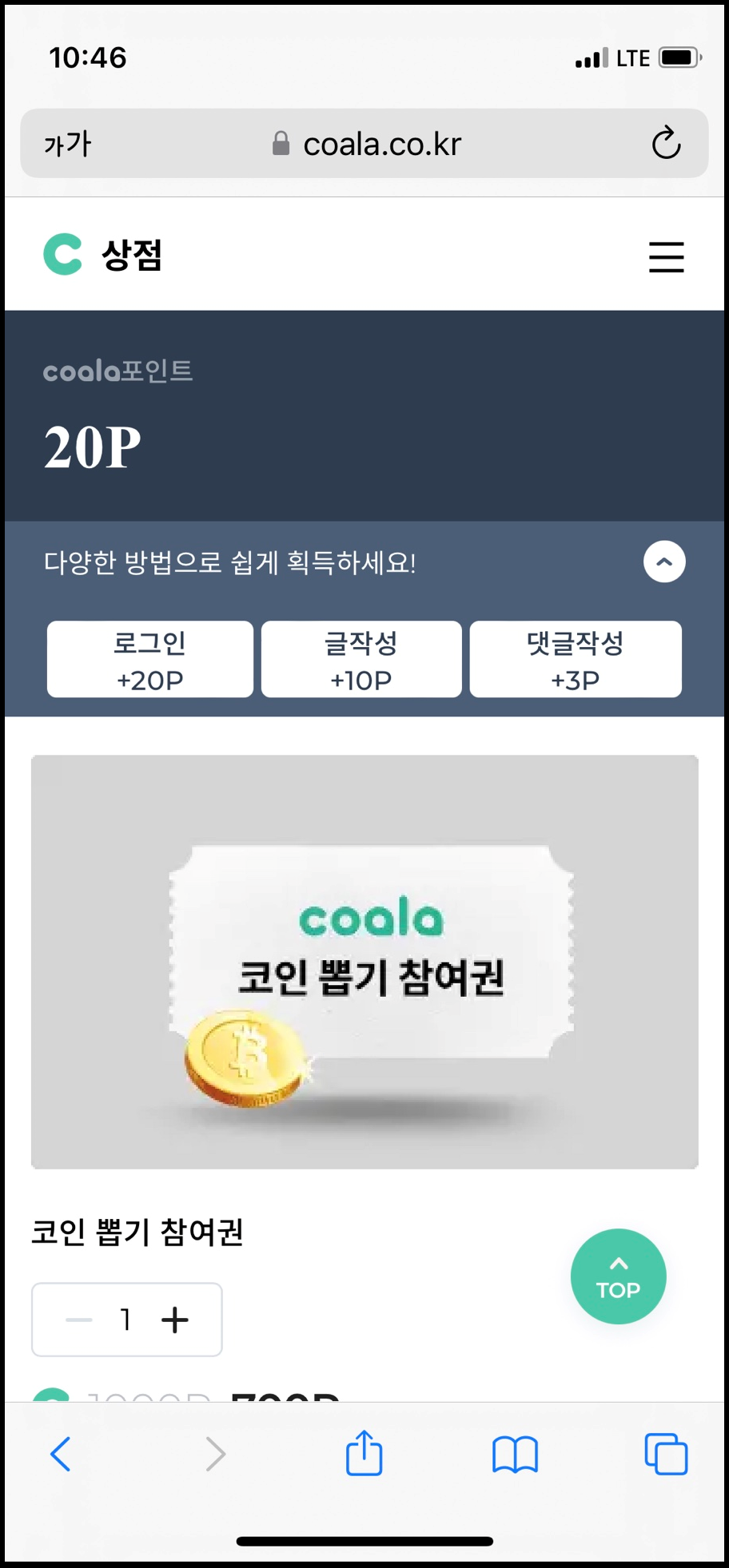 코알라라는 사이트에서 추천인 입력하고 가입하면 코인 뽑기 참여권 1개하고 720P를 주는데요. 상점에서 7...