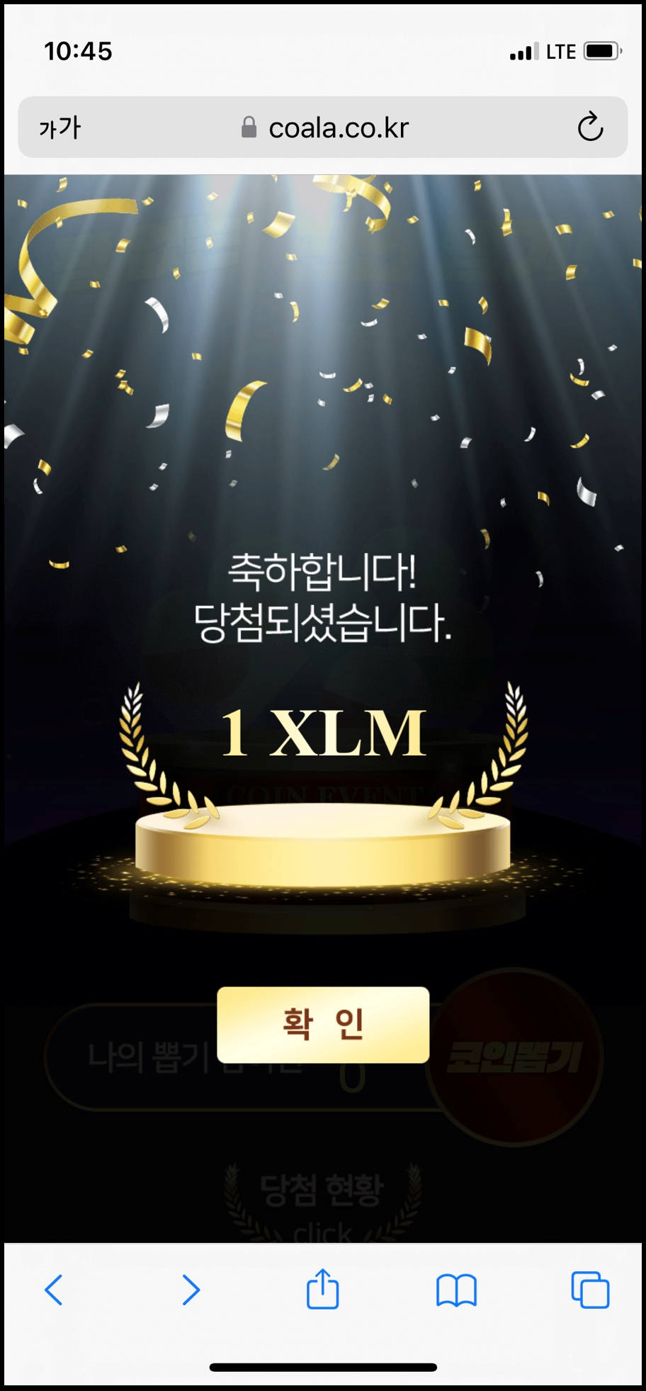 당첨된 내역은 [나의 당첨 현황]에서 확인 가능하며, 당첨된 코인은 [코알라 지갑]에서 확인 또는 출금할 수 있어요. 이벤트 코인은 무작위로 1개씩 지급되며 확률에 의하여 랜덤으로 지급돼요.