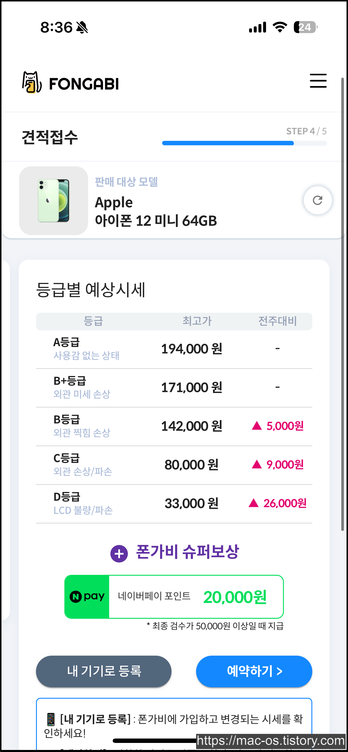 그리고 '슈퍼 보상'이라는 것도 있는데, 폰가비에서 지정한 기기를 중고로 판매하면 네이버페이 포인트 2만원처럼 추가 혜택을 주는 보상을 말한다.