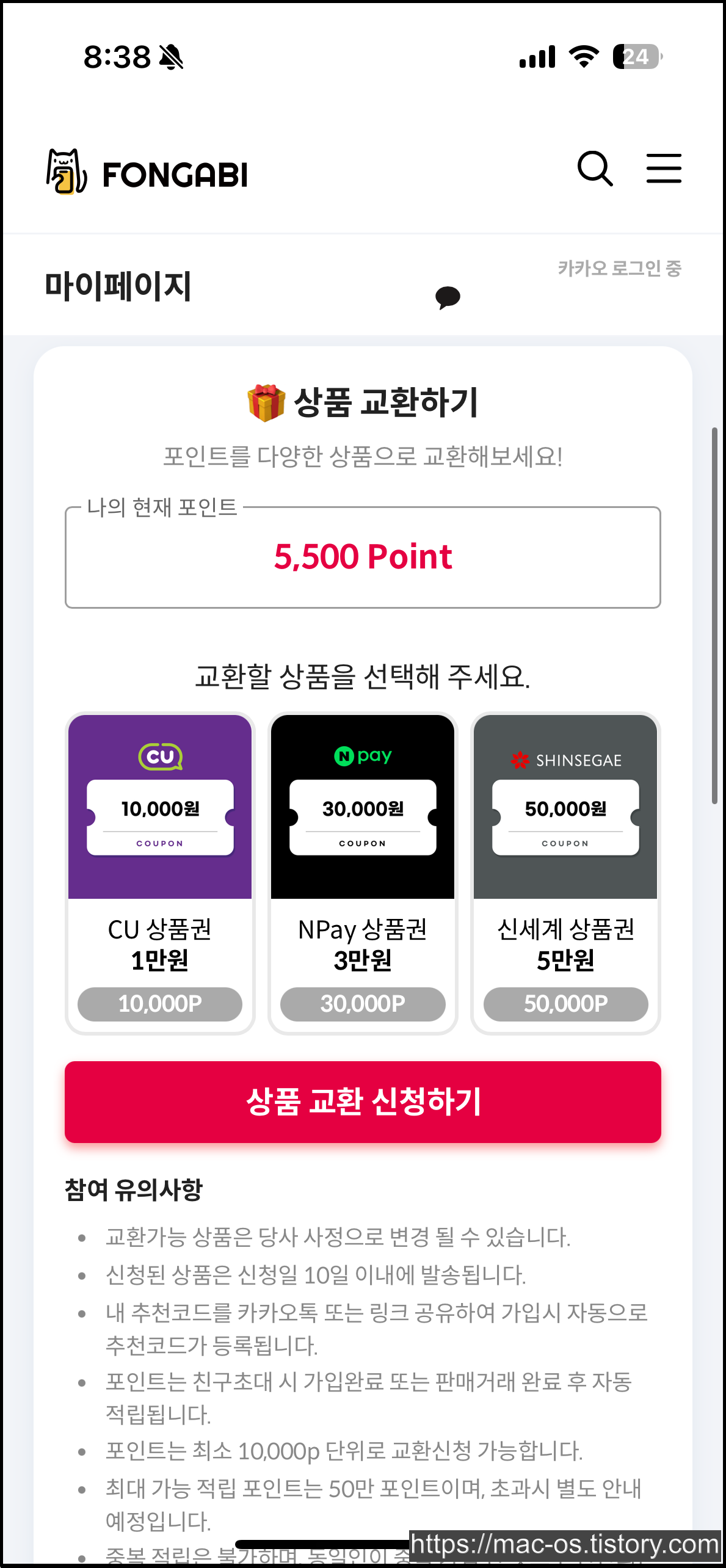 마지막으로 폰가비의 포인트라는 것에 대해서 알아보자. 포인트는 폰가비에서 판매 또는 구매하고 리뷰를 남기거나, 친구를 초대했을 때 얻을 수 있는데 1만/3만/5만 포인트일 때 각각 CU/네이버페이/신세계 상품권으로 교환하여 사용할 수 있다.