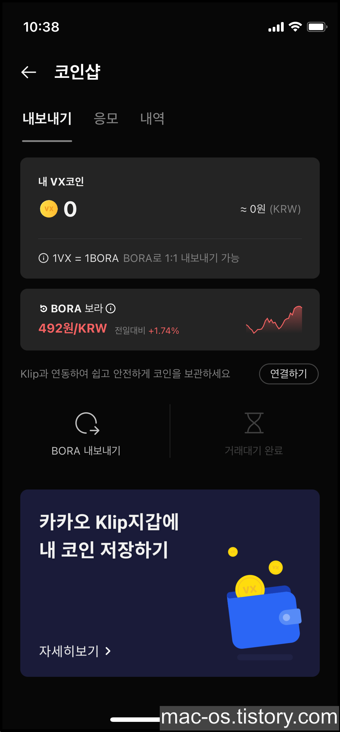 VX코인은 [마이] > [코인샵]에서 1:1 비율로 BORA(487원)으로 교환하여 출금하거나 애플 맥북, 다이슨 스타일러, LG 스탠바이미 TV 등을 응모하는데 사용돼요.
