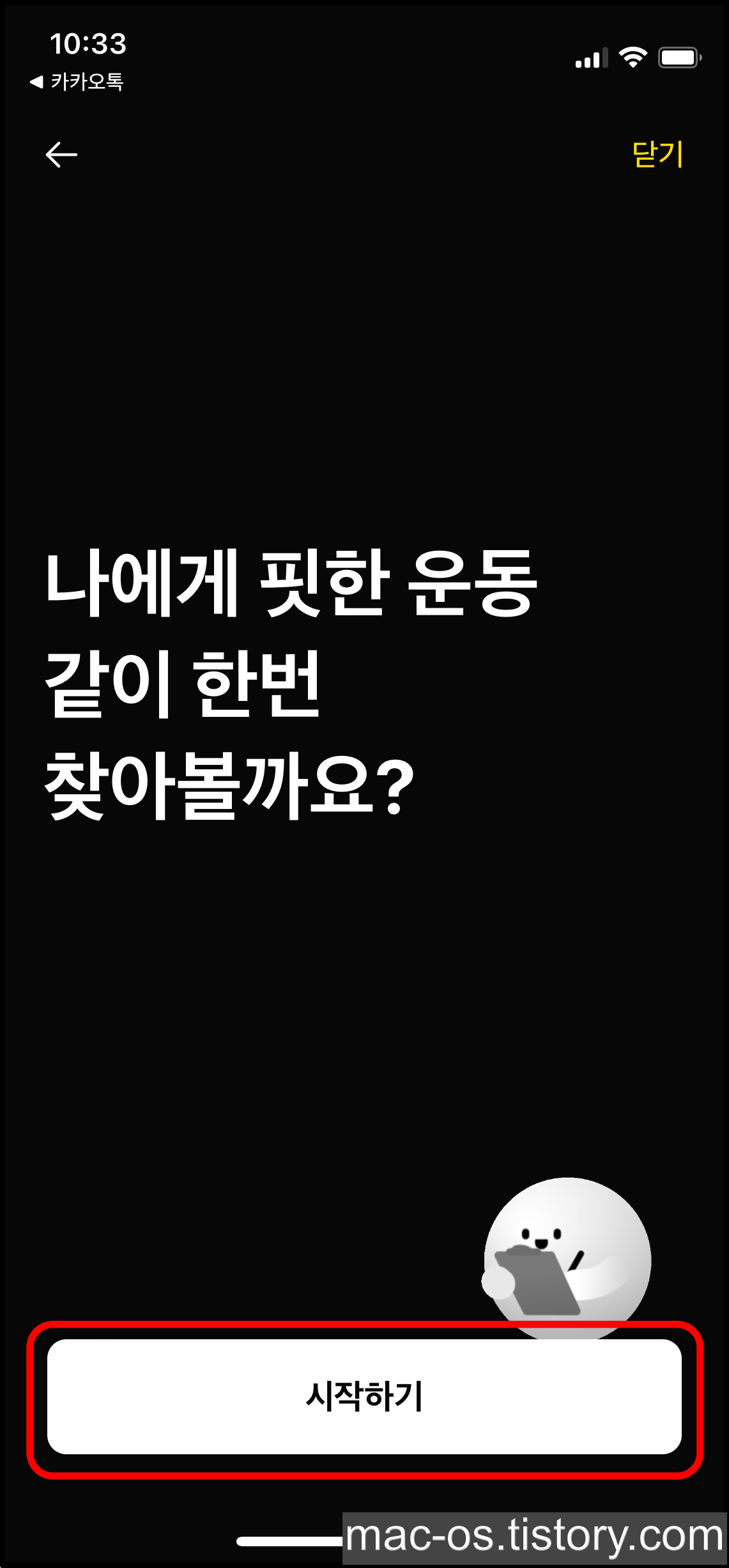 2. 카카오톡 계정 로그인을 하고 나서 아래에 있는 [시작하기]를 터치해 주세요.