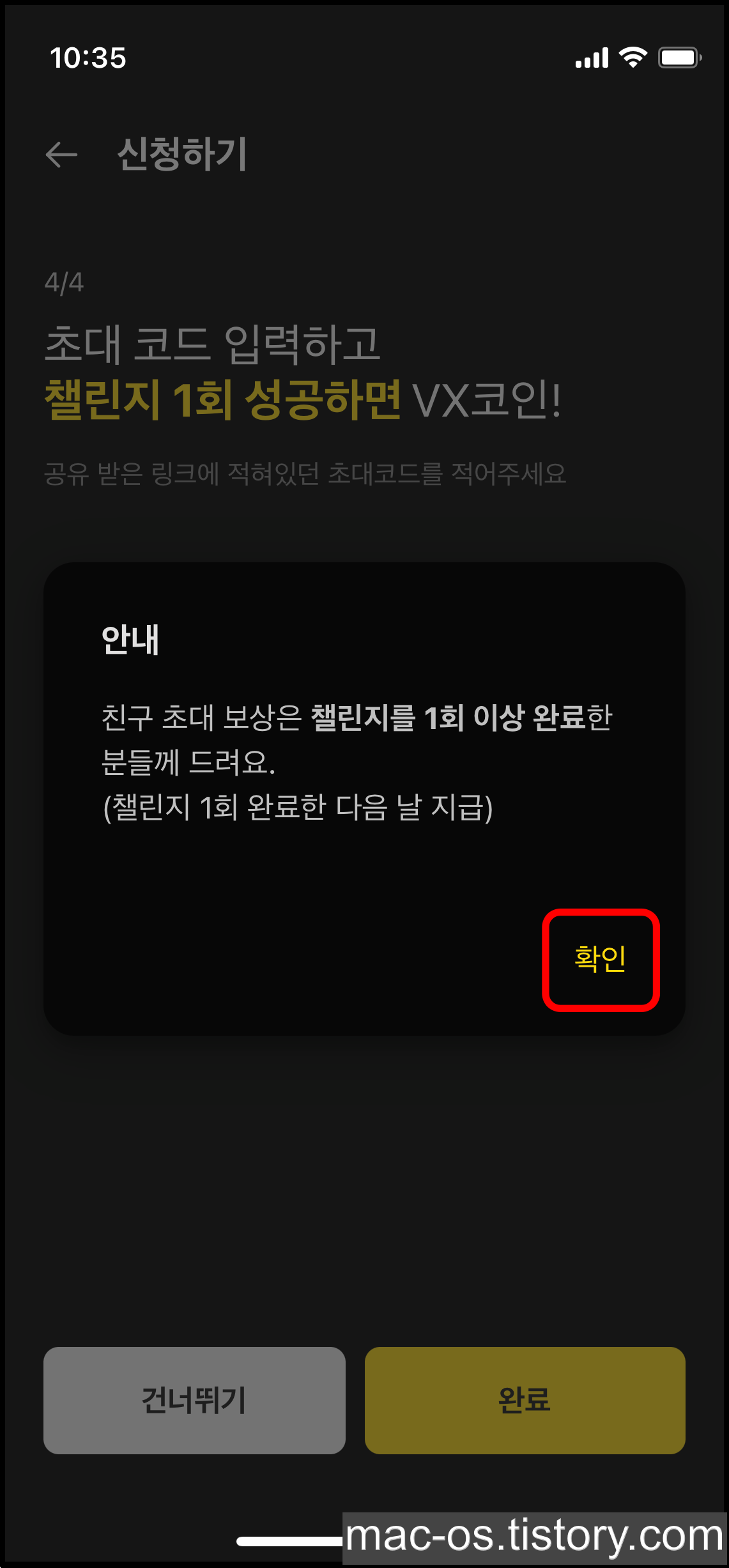 5. 초대코드 입력하고 챌린지 1회 성공하면 1,000원 상당의 VX코인 획득 가능