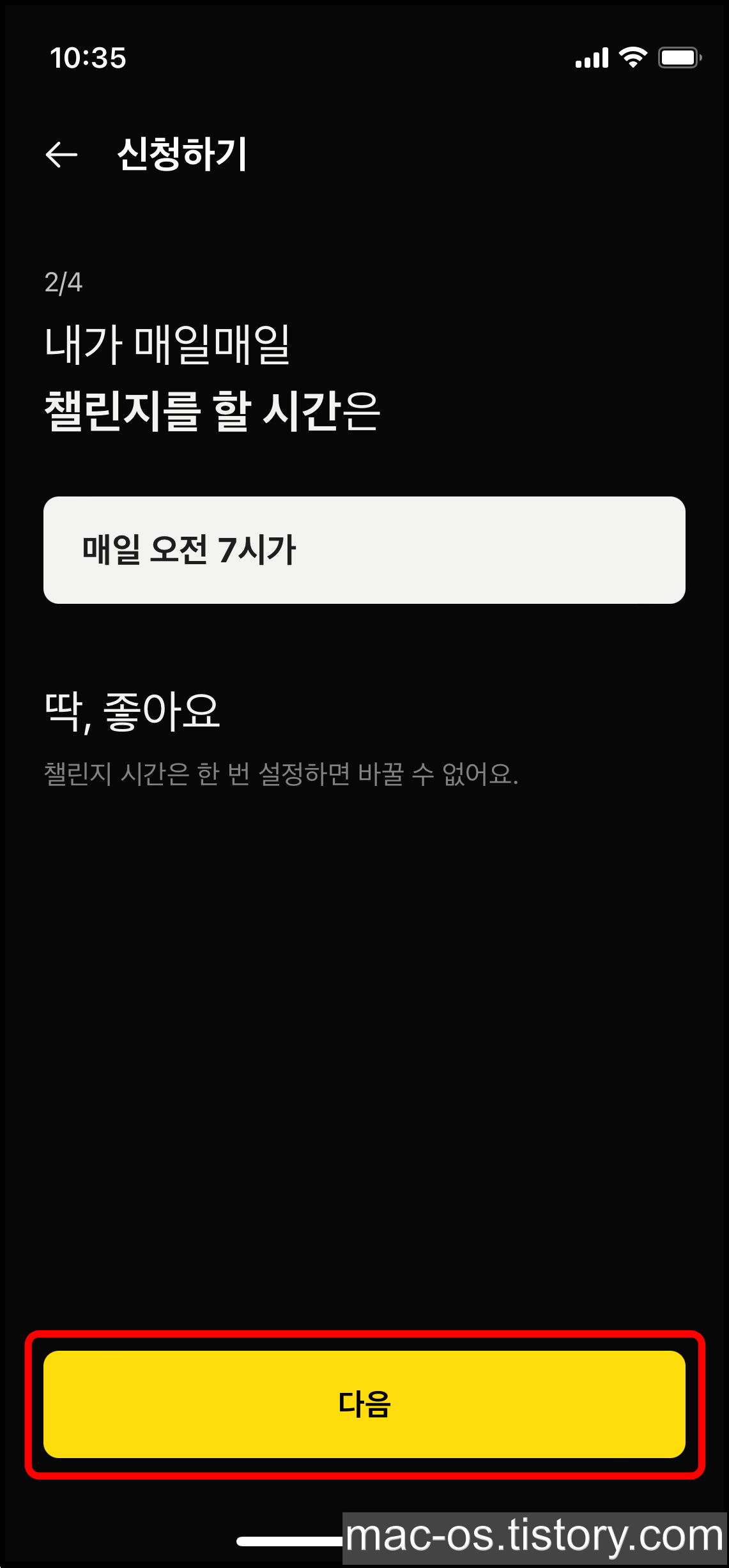 7. 챌린지를 할 시간을 선택하고 [다음]을 눌러주세요.