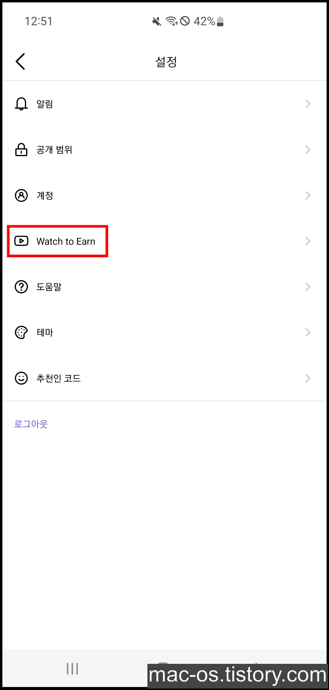 오른쪽 더보기를 누르고 [Watch to Earn]를 누르면 아래 페이지로 이동할 수 있어요.