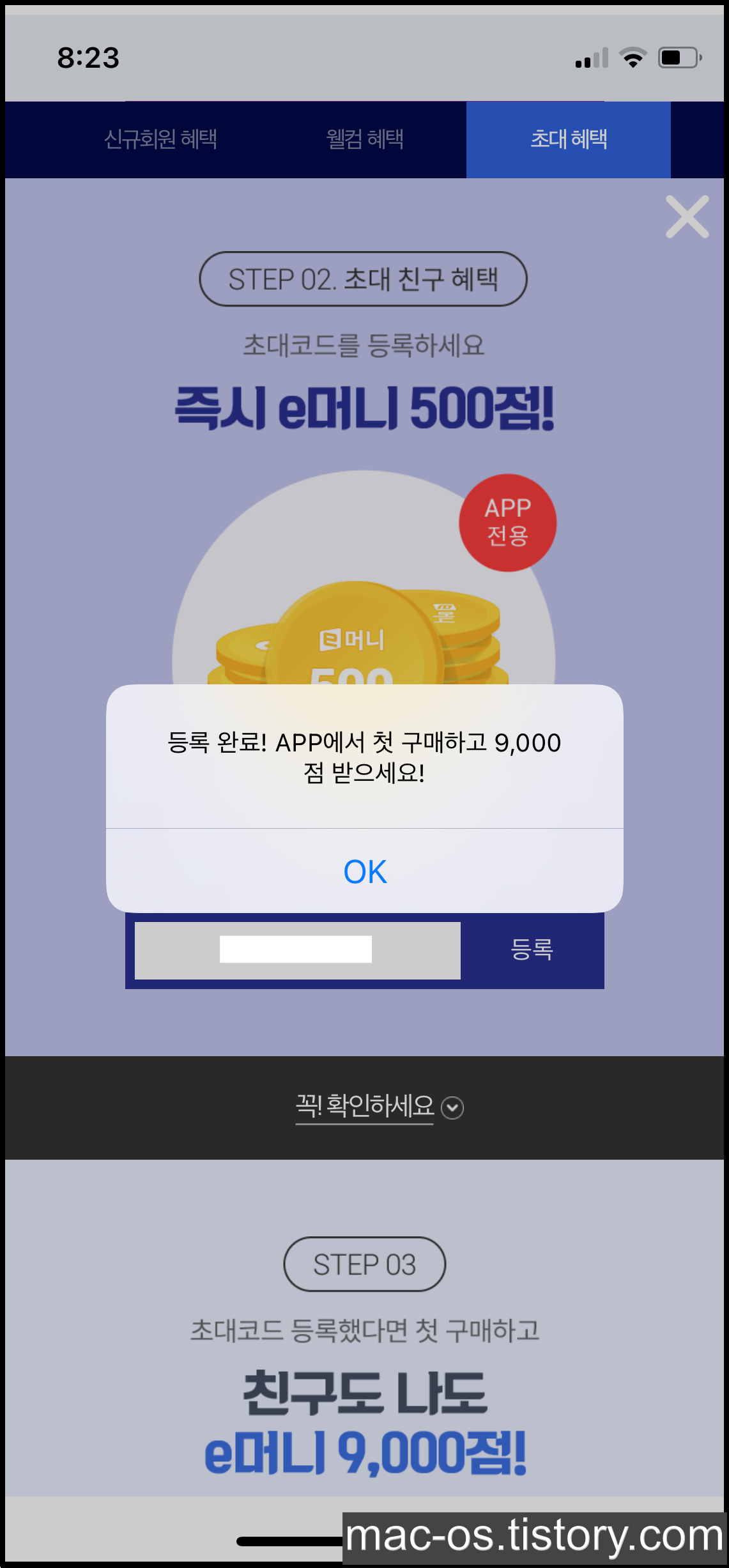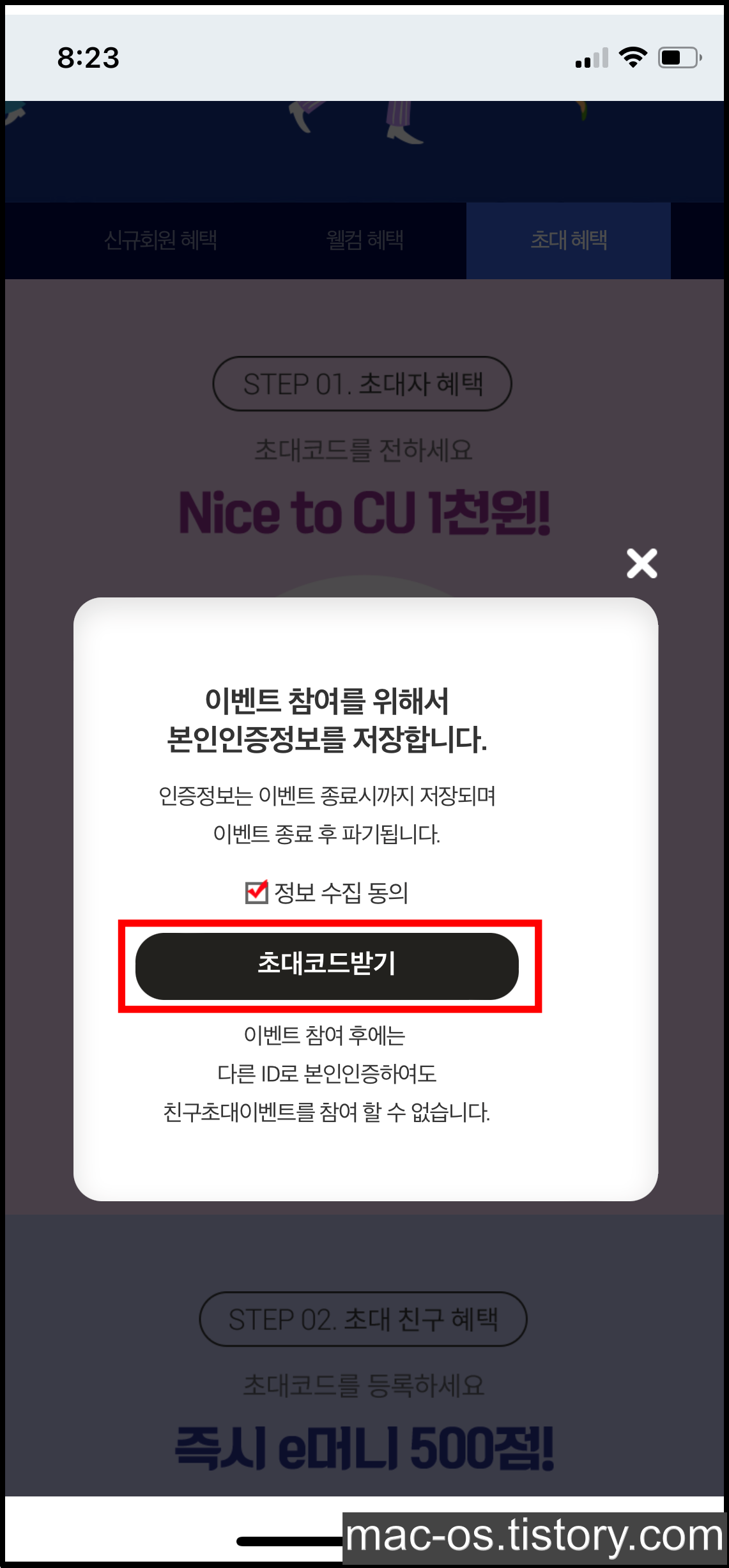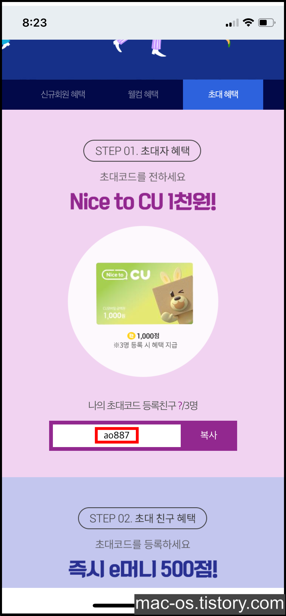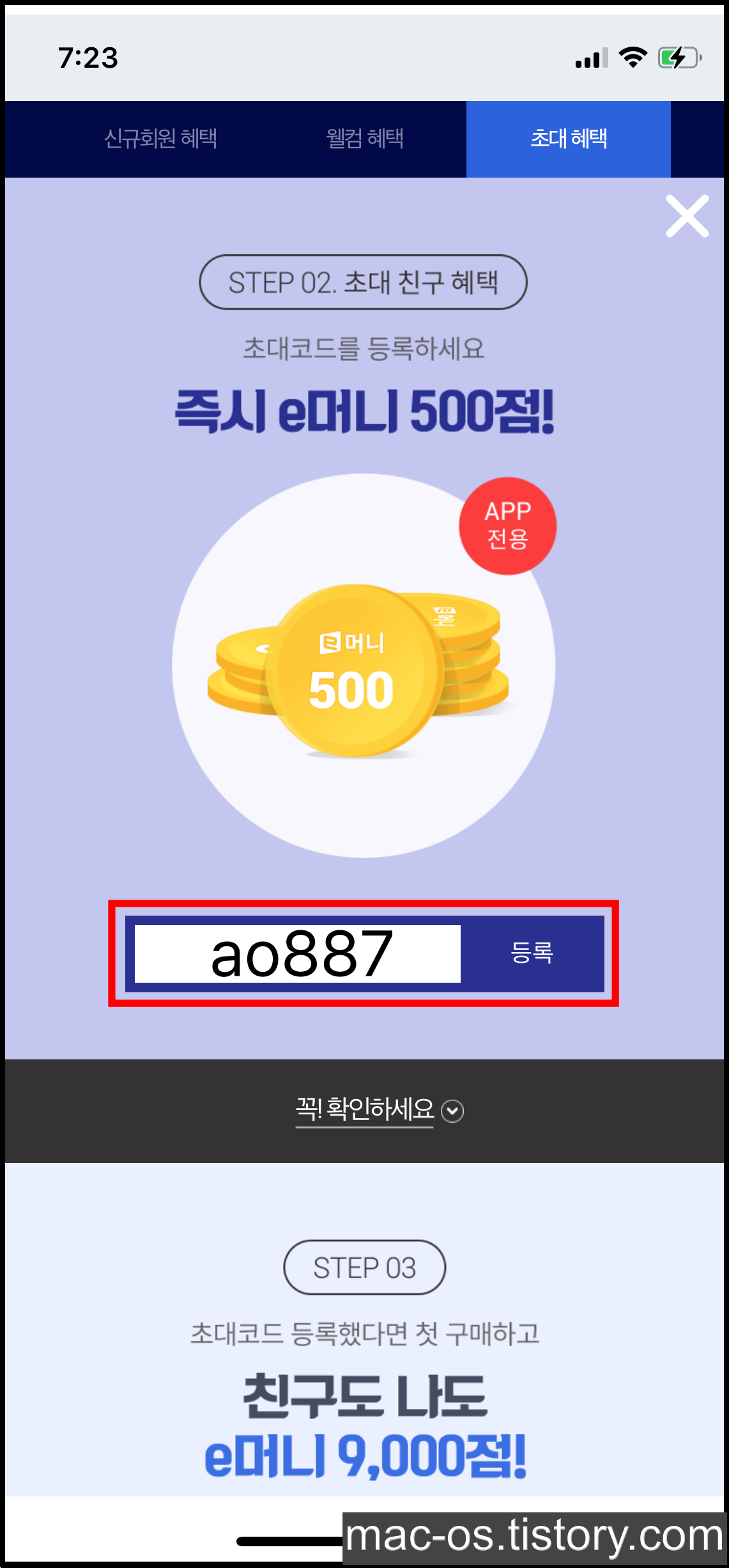 5. 해당 이벤트 페이지에서 초대코드 ao887 입력