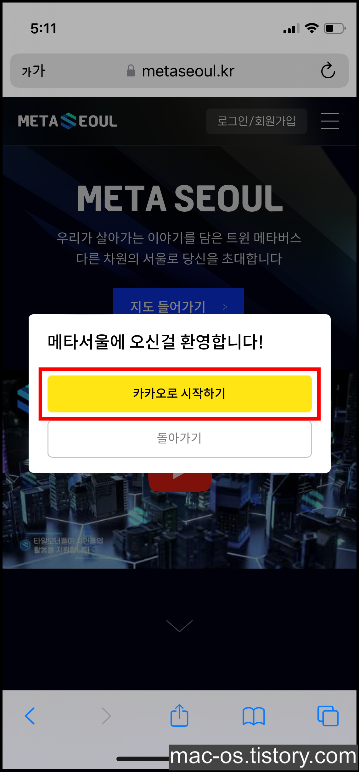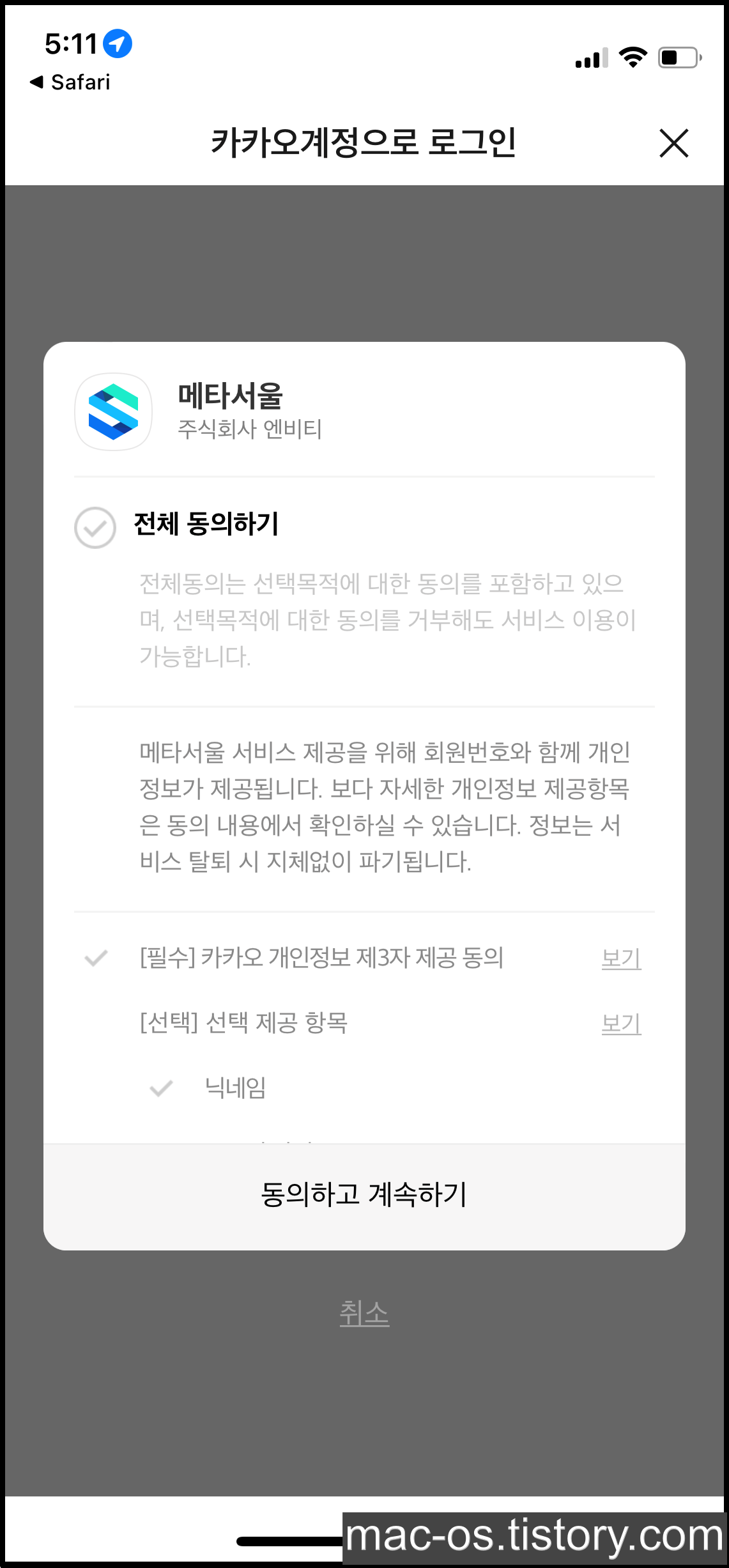 메타서울은 카카오톡 계정으로 간편 로그인해서 가입할 수 있습니다. 필수인거 체크하고 동의해주시면 됩니다.