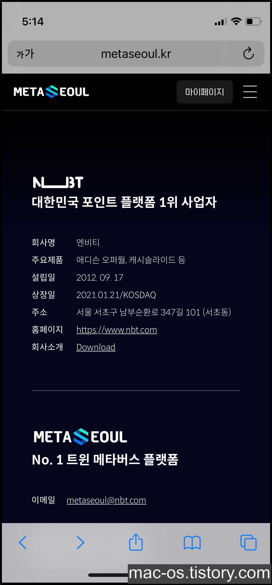 네이버 검색창에 '메타서울엔비티'라고 검색해서 들어오시거나 여기를 터치해서 들어오시면 됩니다.
