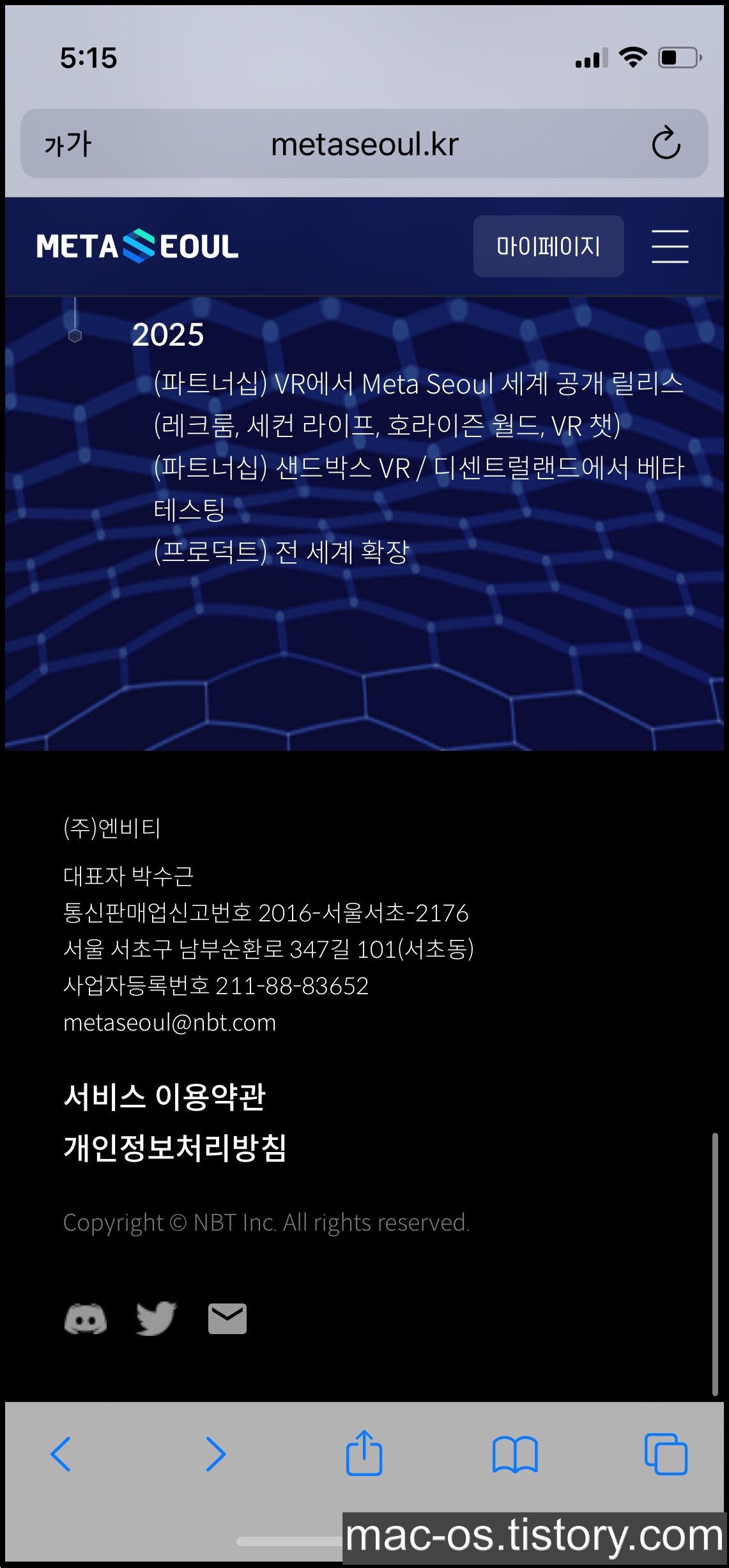 1. 메타서울 엔비티 홈페이지로 이동한다.