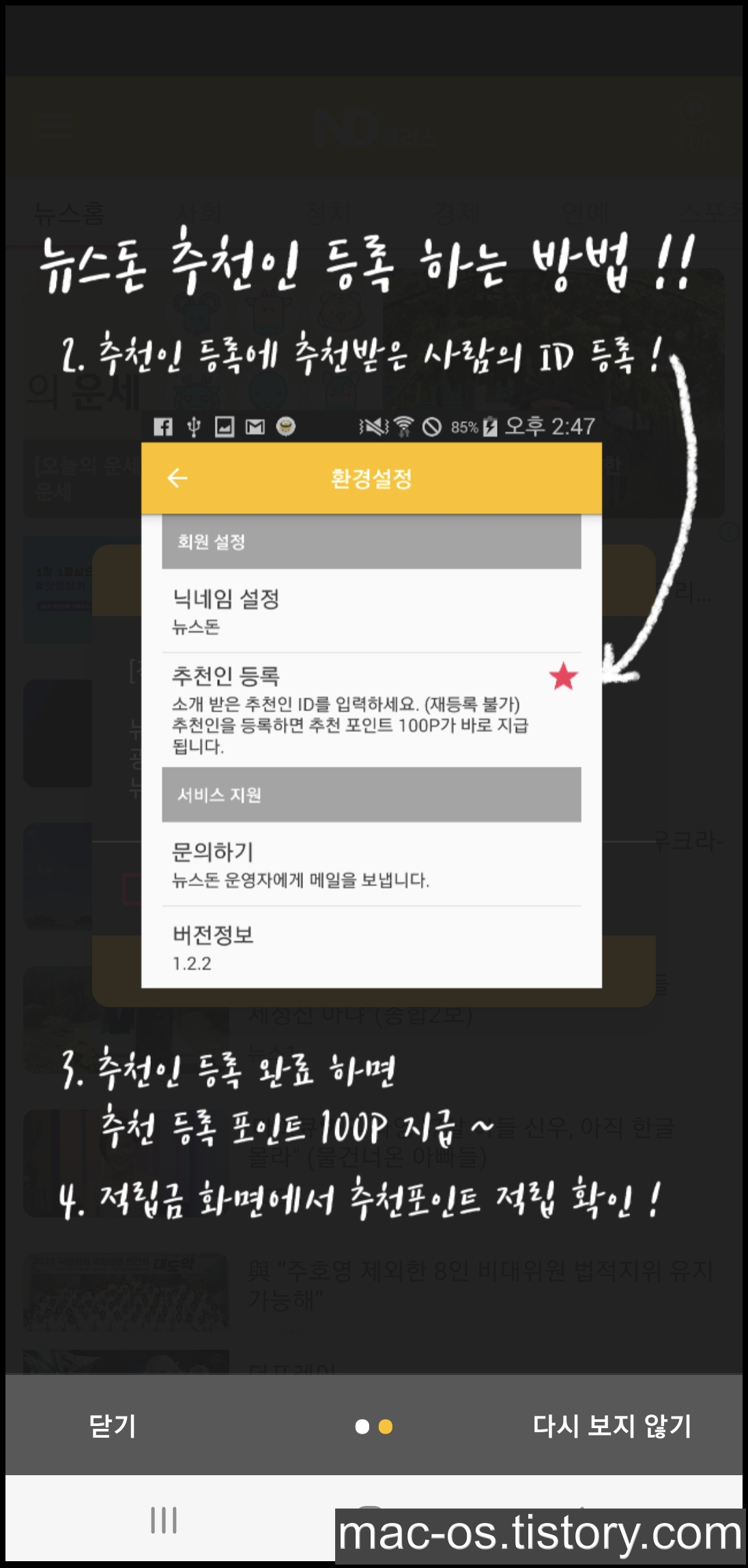 뉴스돈 플러스 추천인 등록 방법