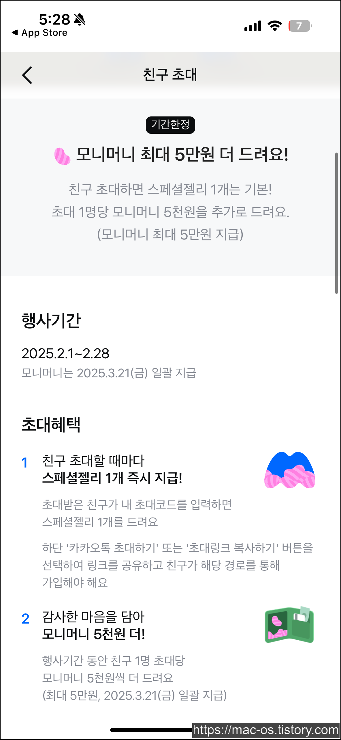- 친구가 가입하면 즉시 스페셜젤리 1개 추가 지급