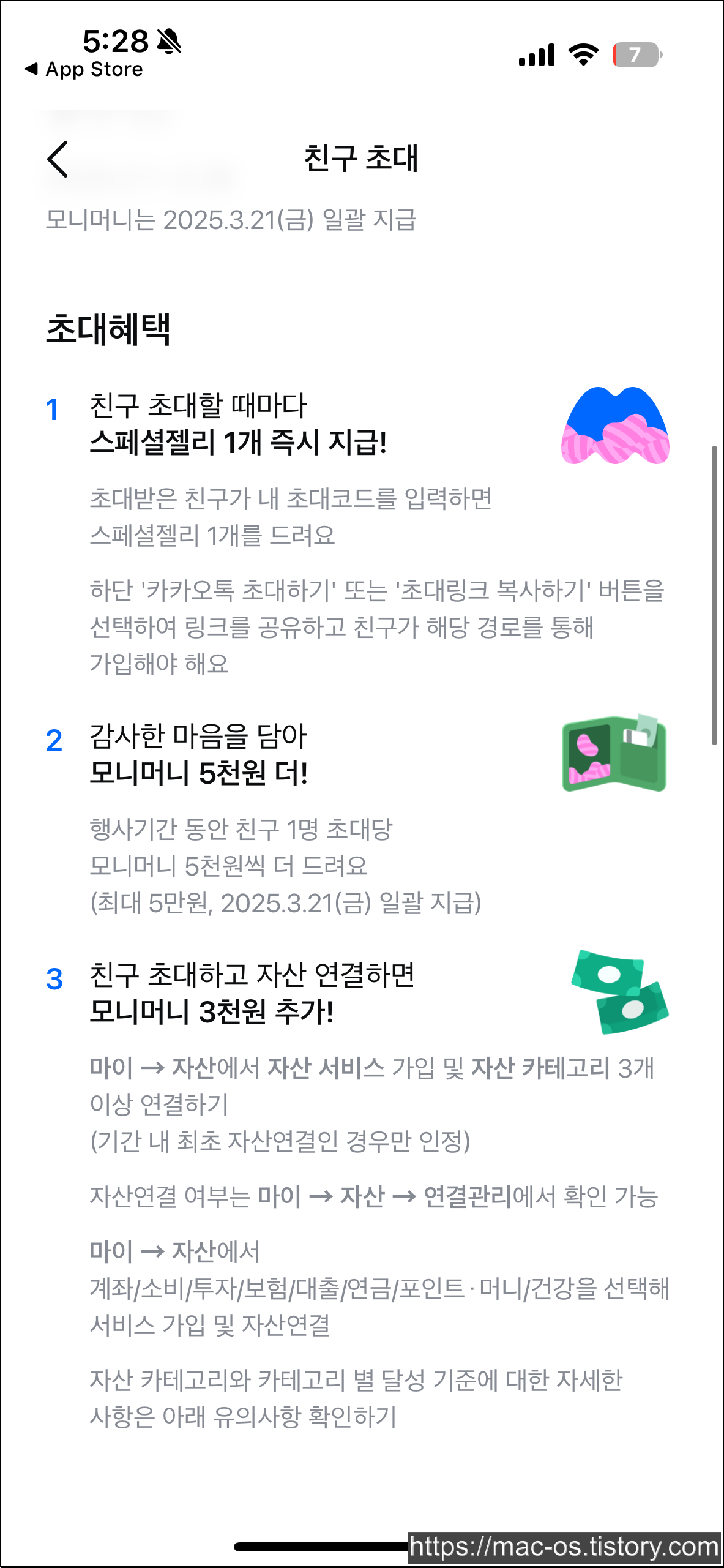 - 초대한 친구가 자산을 연결하면 모니머니 3,000원 추가 지급
